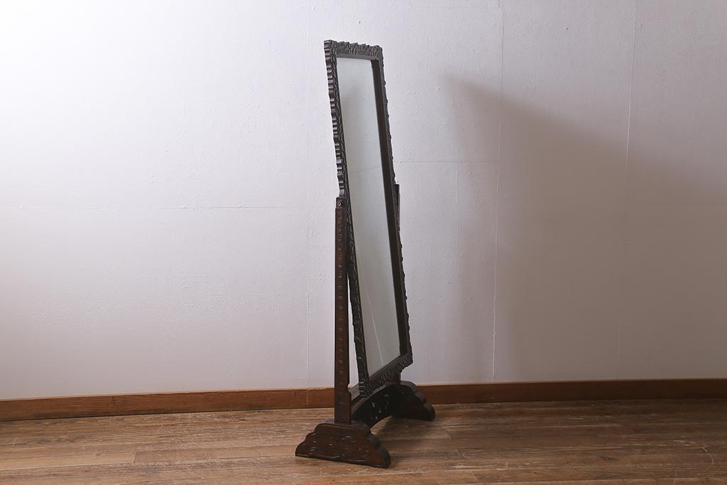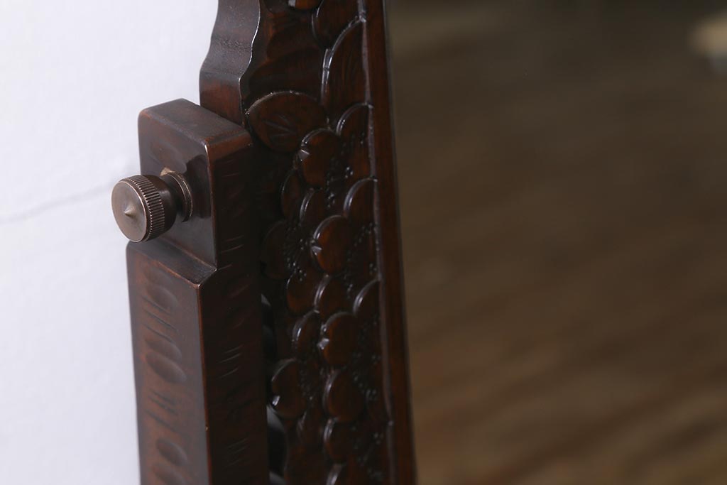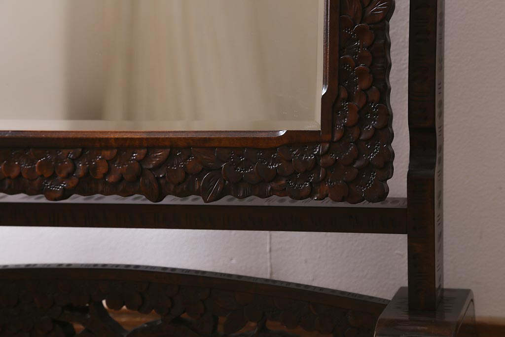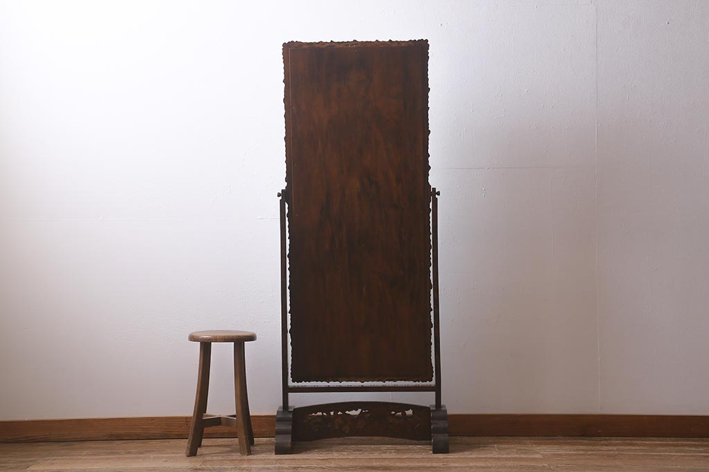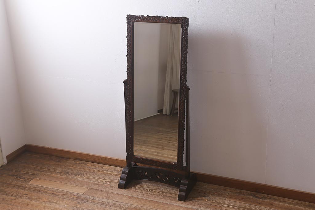 鏡 > 中古 伝統工芸 軽井沢彫り 桜の意匠が目を引く上品な佇まいの姿見(鏡、ミラー)(R-042059)