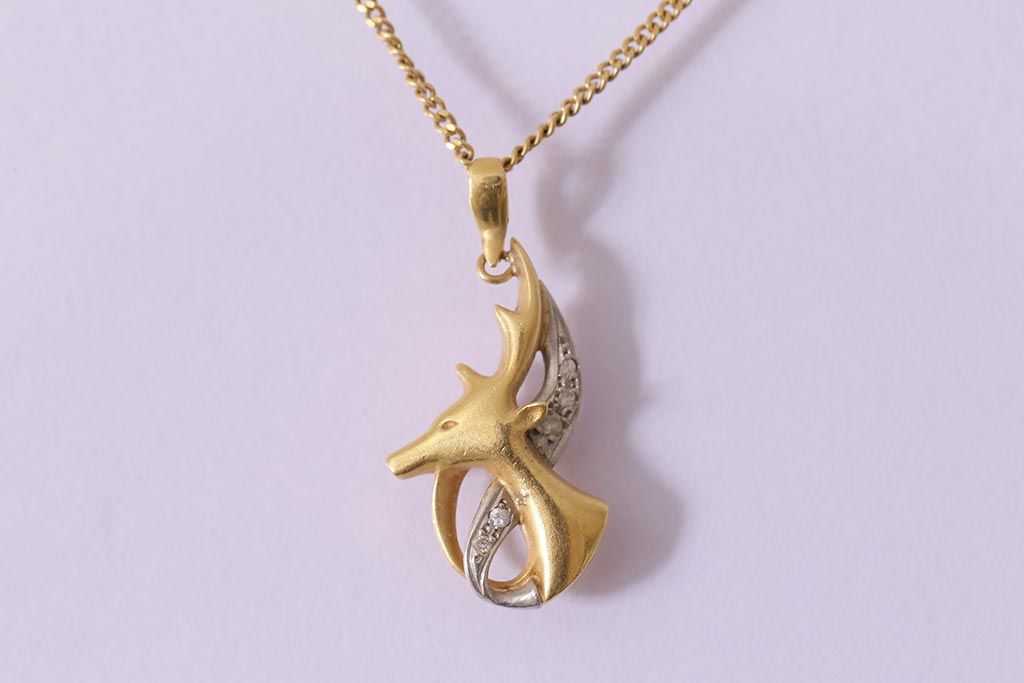 ラフジュ工房> 雑貨 > ヴィンテージアクセサリー Pt900 K18(18金) 鹿モチーフのゴールドのネックレス 重さ約7.11g(ペンダント、ビンテージ)(R-041930)