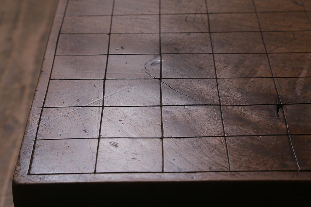 花台・飾り台 > 和製アンティーク 欅(ケヤキ)材 古い木の風合いが魅力的な足付将棋盤(花台、飾り台)(R-042049)