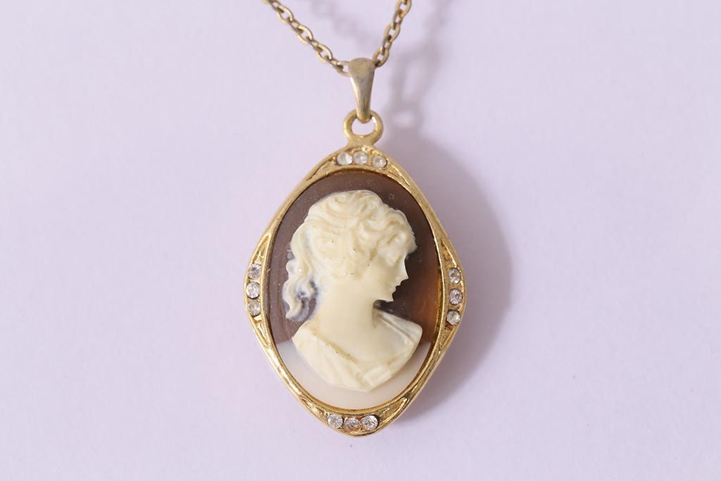 ラフジュ工房> 雑貨 > ヴィンテージアクセサリー カメオ風 女性の横顔をモチーフにしたビンテージネックレス(ペンダント)(R-041928)