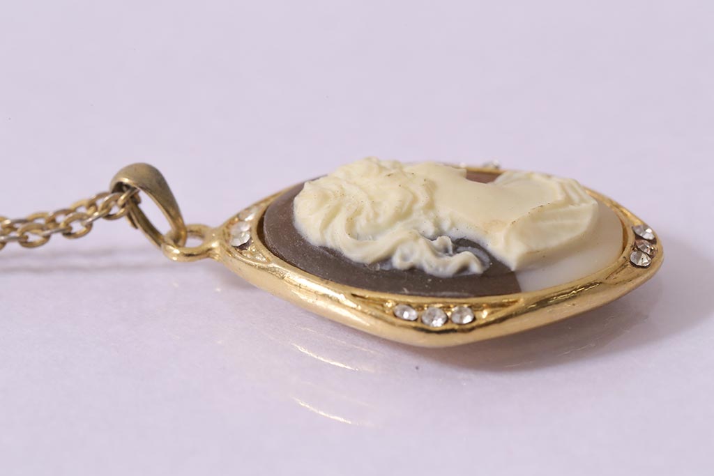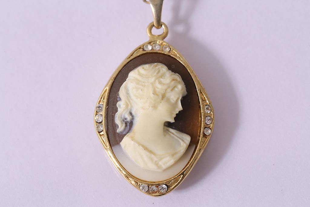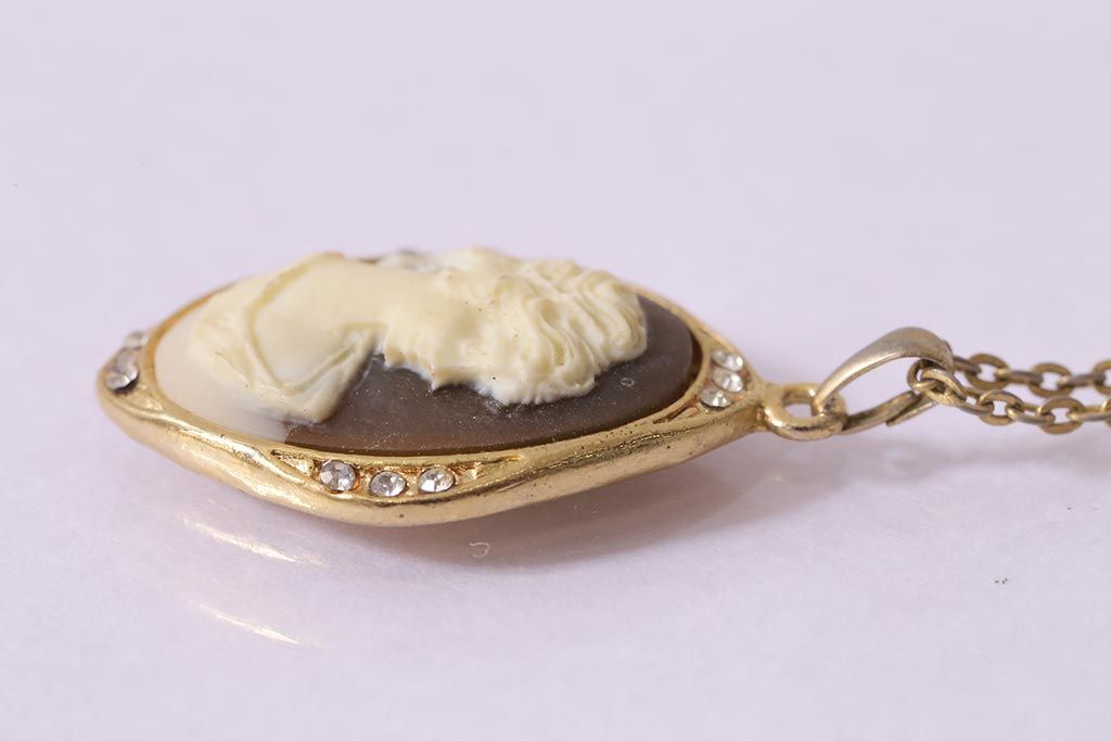 ラフジュ工房> アクセサリー > ヴィンテージアクセサリー カメオ風 女性の横顔をモチーフにしたビンテージネックレス(ペンダント)(R-041928)