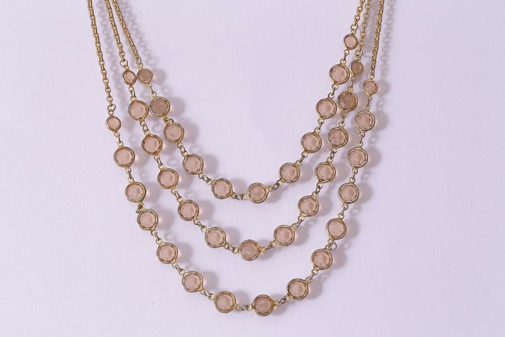 ラフジュ工房> アクセサリー> ペンダント・ネックレス > ヴィンテージアクセサリー アメリカビンテージ Goldette N.Y(ゴルデット) 上品で可愛らしい3連ネックレス(ロングネックレス、コスチュームジュエリー)(R-041929)