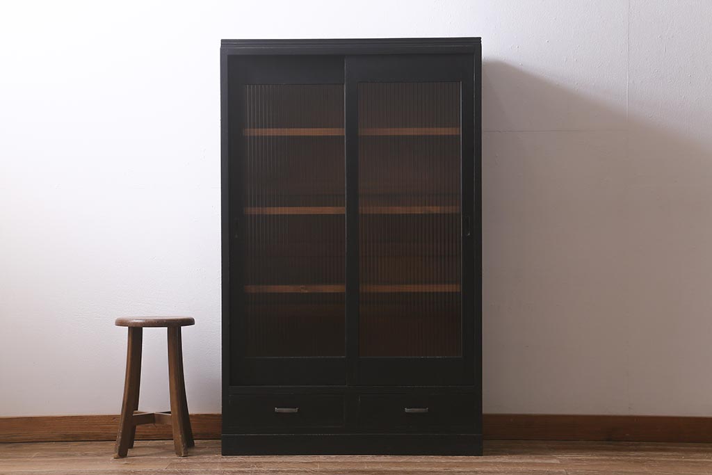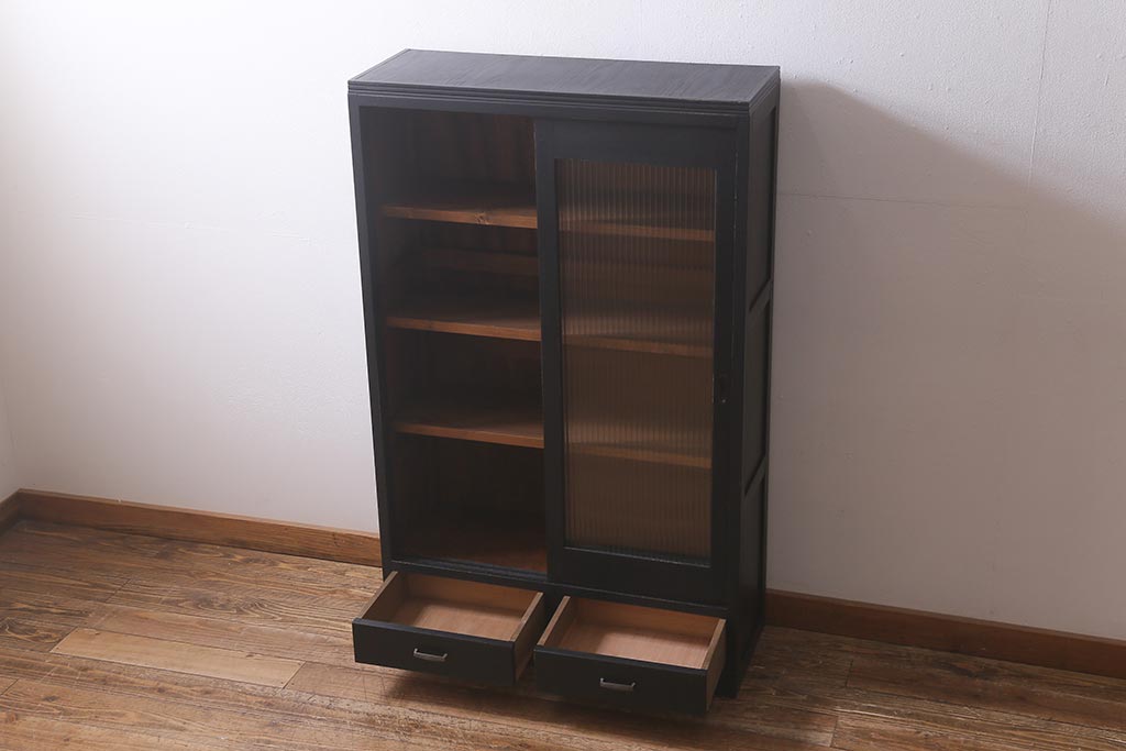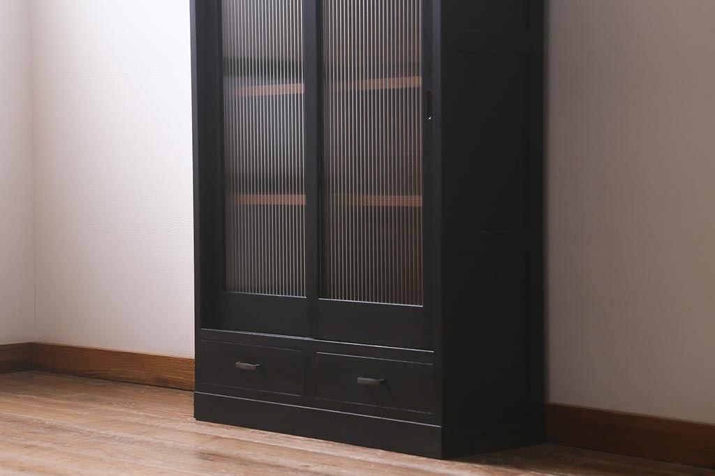 和製アンティークのガラス戸棚です。
