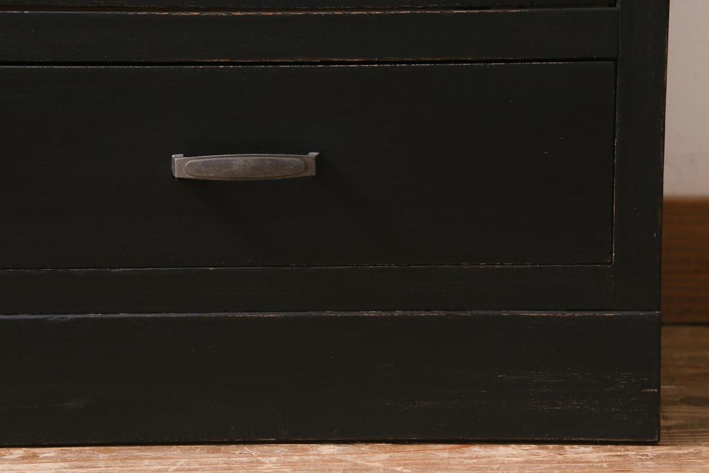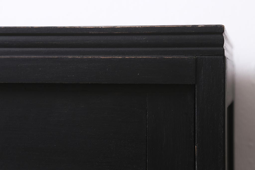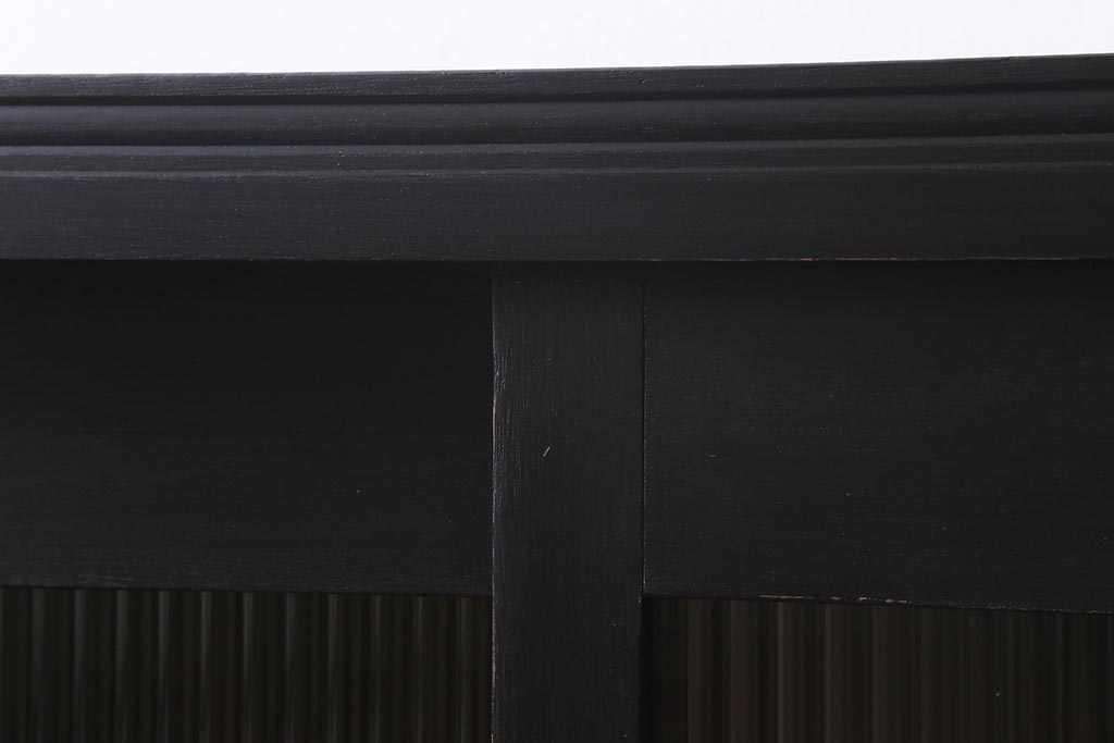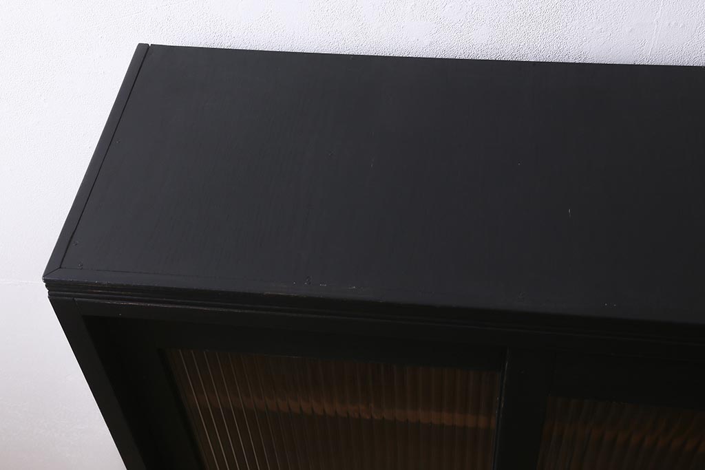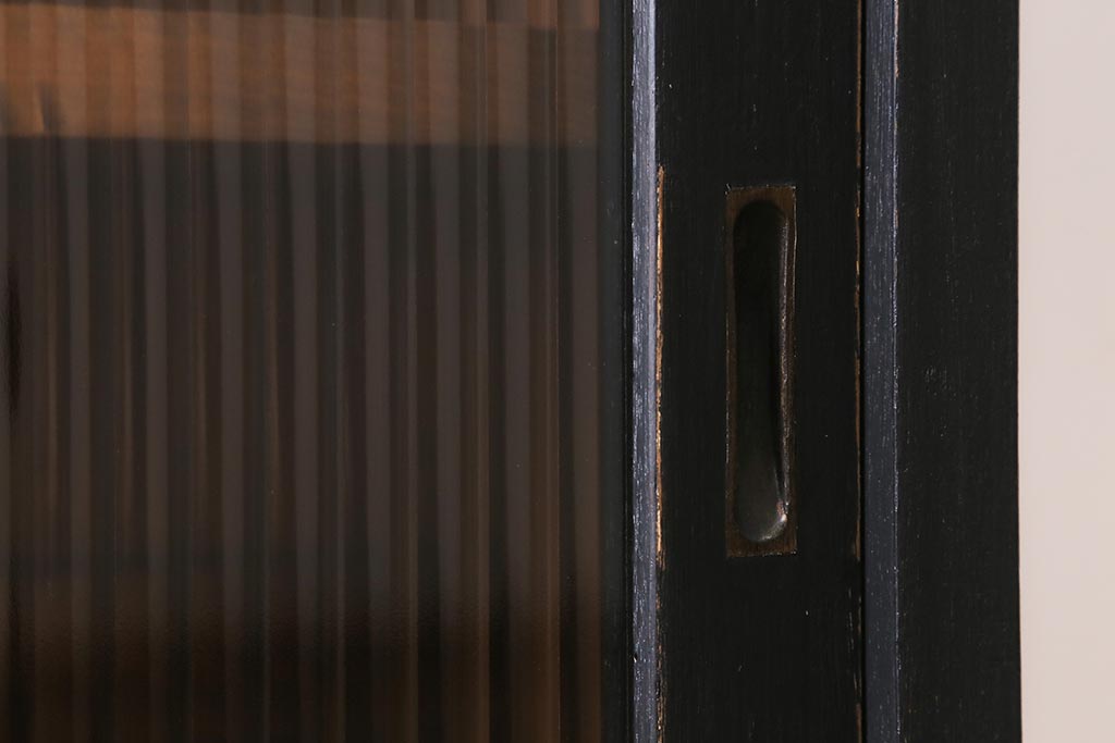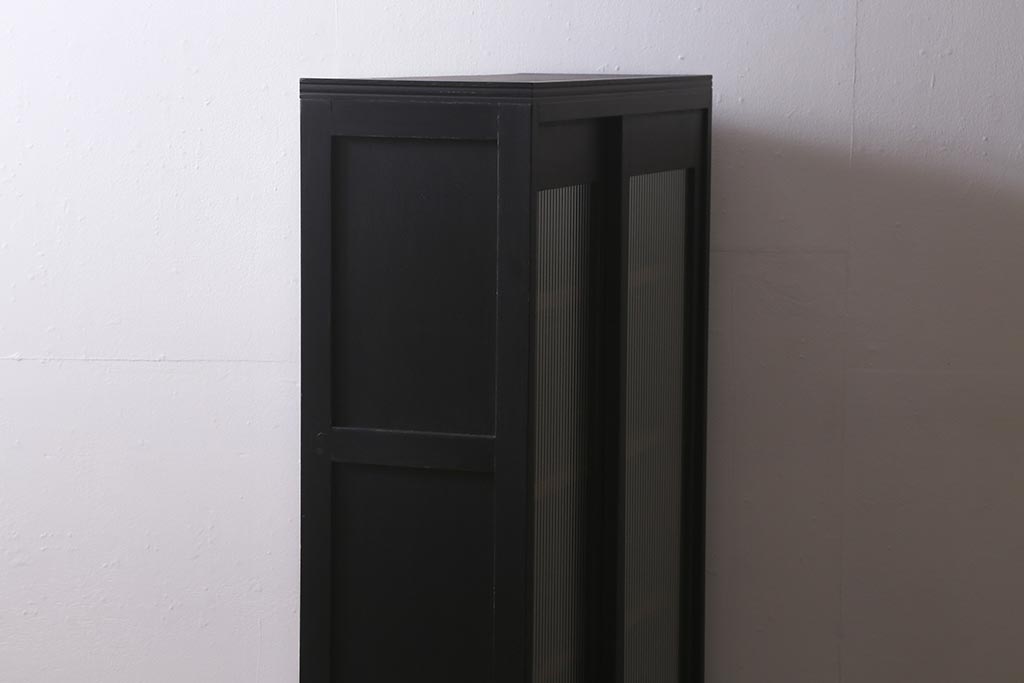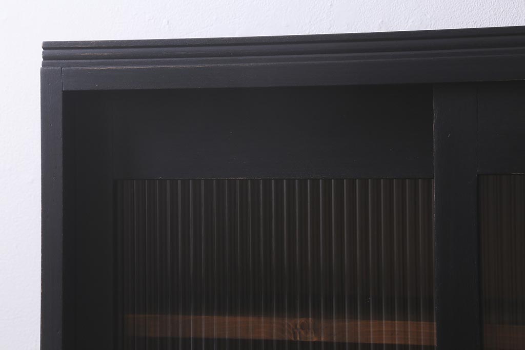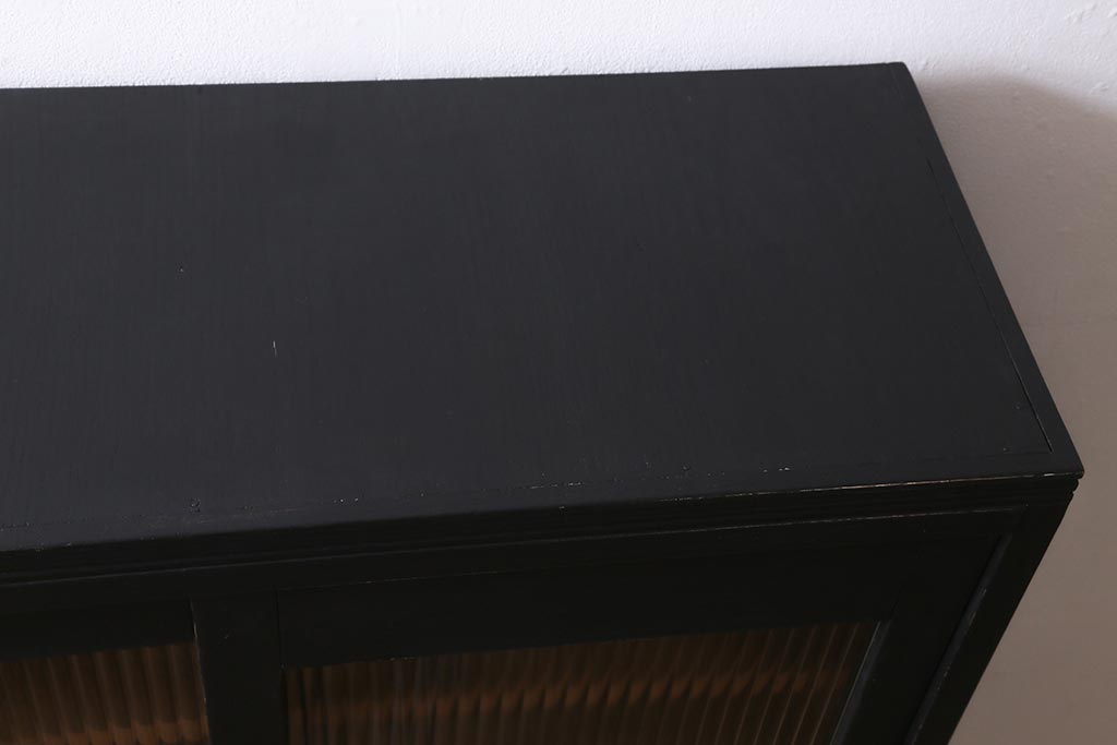 アンティーク家具 昭和中期 ペイント モールガラス入り マットカラーがおしゃれなガラス戸棚(収納棚、キャビネット)(R-042058)です。