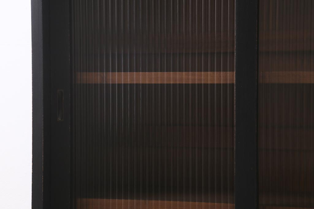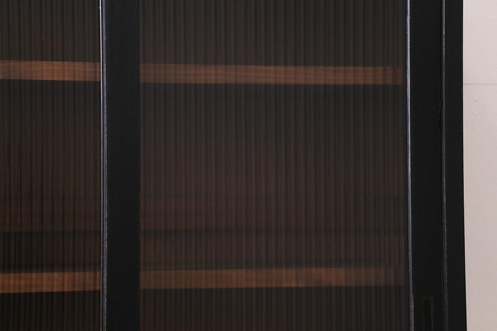 アンティーク家具 昭和中期 ペイント モールガラス入り マットカラーがおしゃれなガラス戸棚(収納棚、キャビネット)(R-042058)