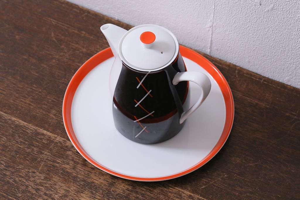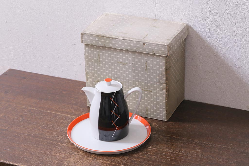 ヴィンテージ プレミアノリタケ(Noritake、則武、日陶) レトロモダンなポット・プレートセット(洋食器、ビンテージ)(R-041613)