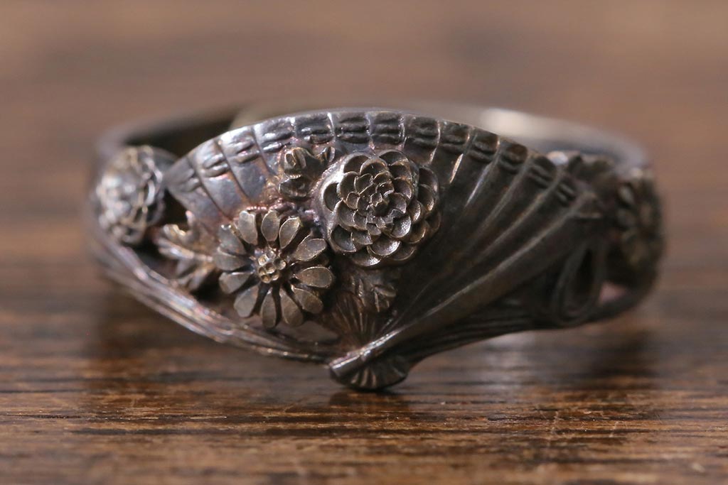 ラフジュ工房> 雑貨 > アンティーク雑貨 昭和初期 花に扇 アンティークリング(指輪)(R-041614)