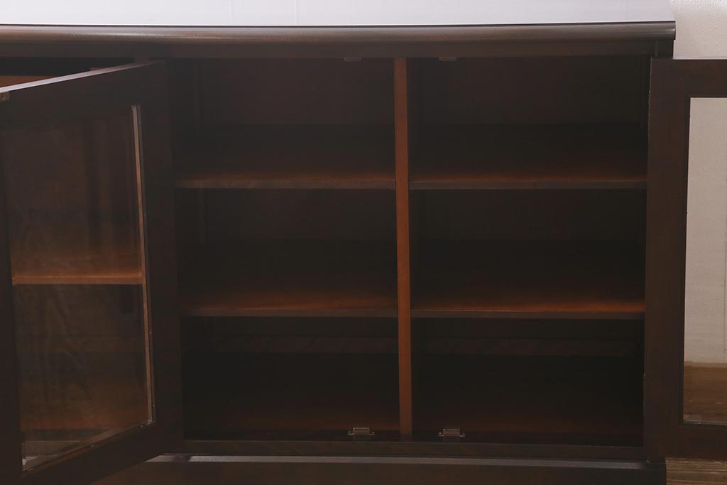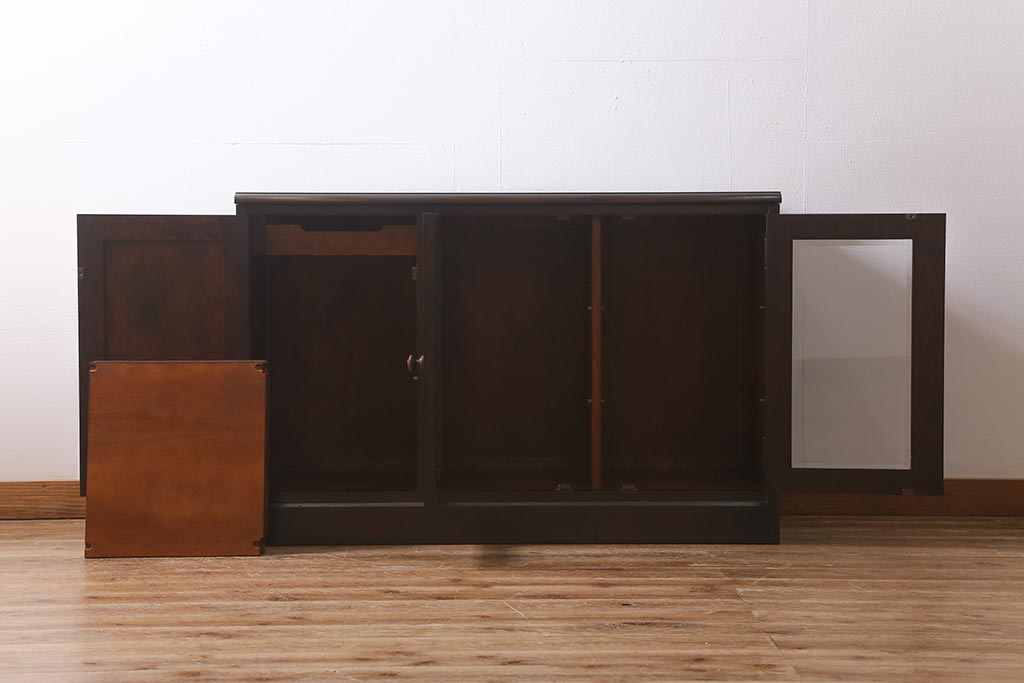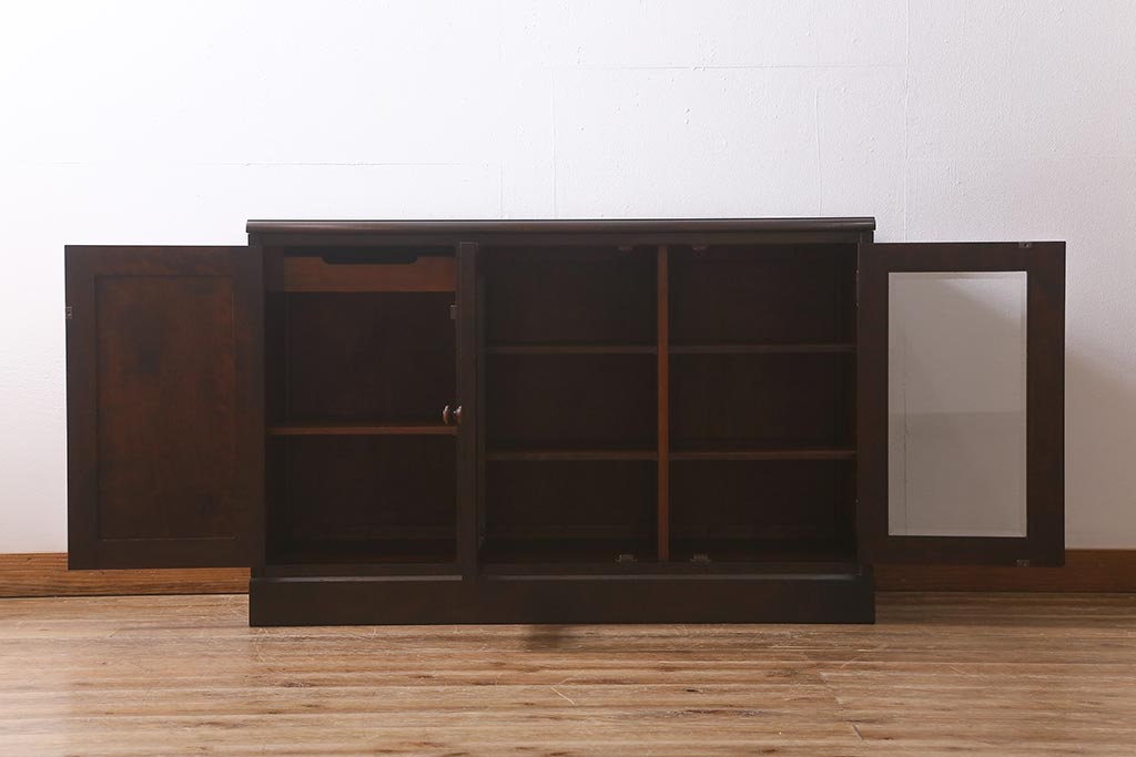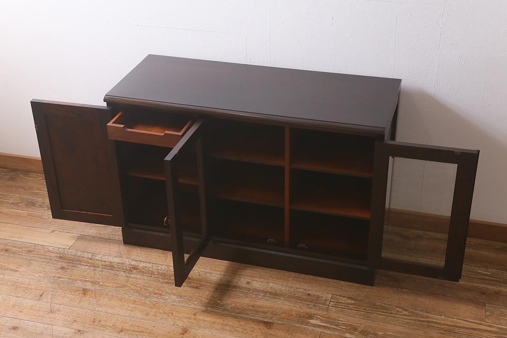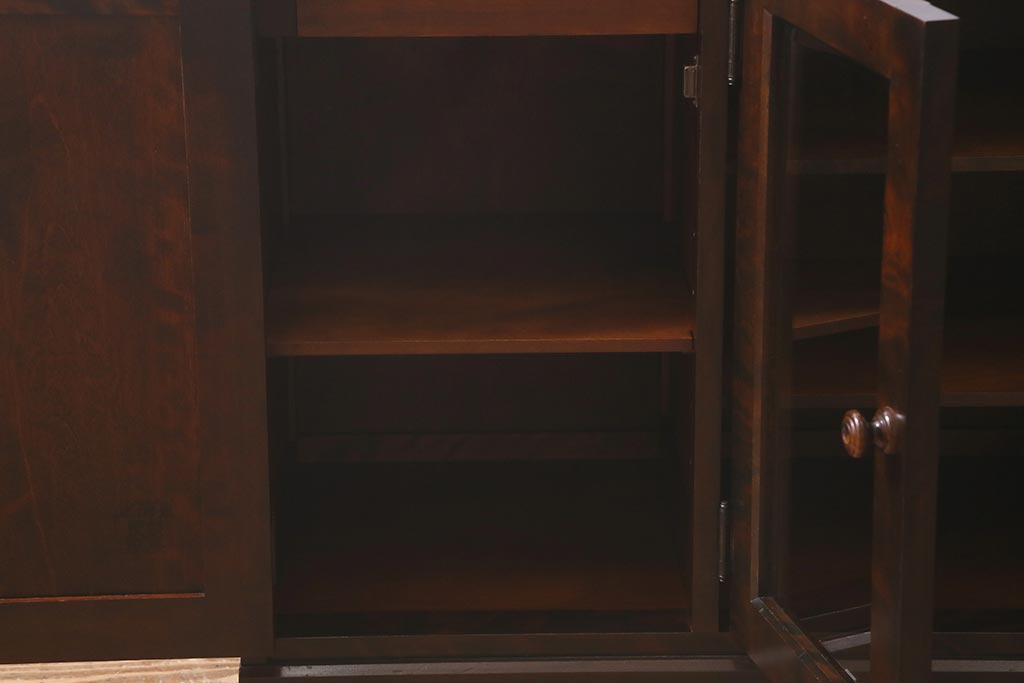 中古 北海道民芸家具 落ち着いた色味が取り入れやすいサイドボード(リビングボード、キャビネット、収納棚)(R-042056)です。