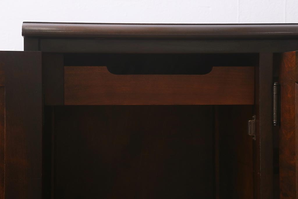 中古 北海道民芸家具 落ち着いた色味が取り入れやすいサイドボード(リビングボード、キャビネット、収納棚)(R-042056)