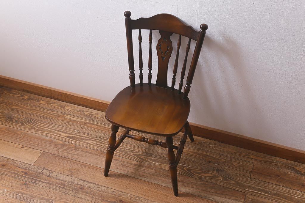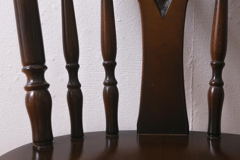 ビンテージ家具 飛騨産業 キツツキマーク クラシカルな佇まいが魅力のダイニングチェア(椅子、コームバックチェア)(R-042087)