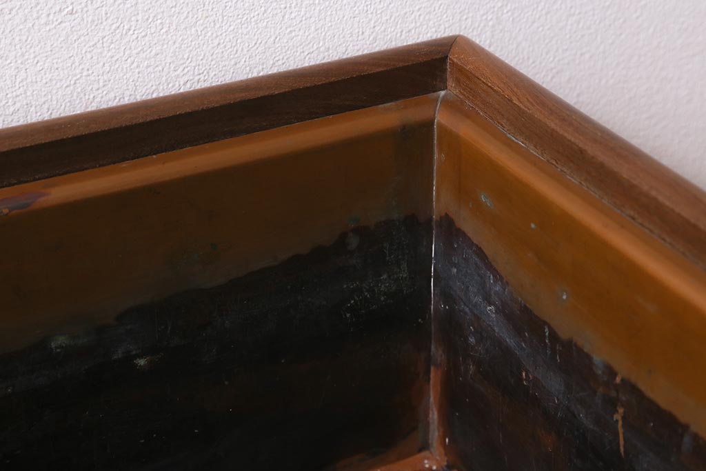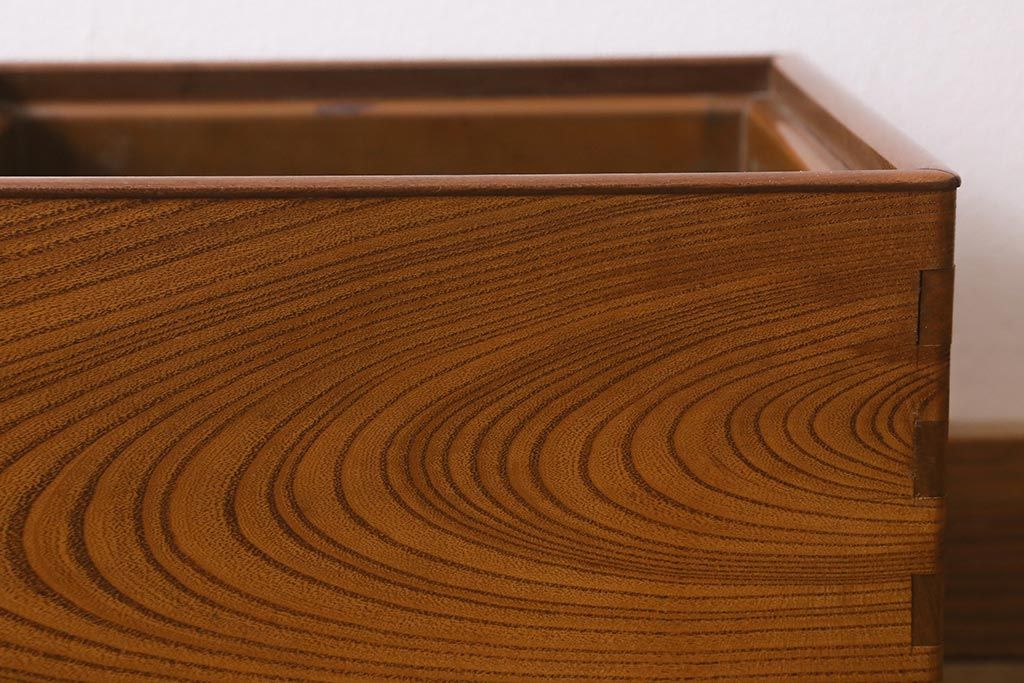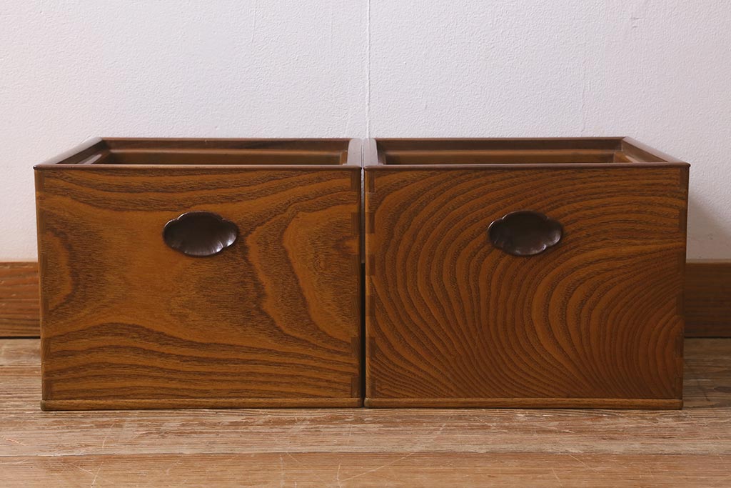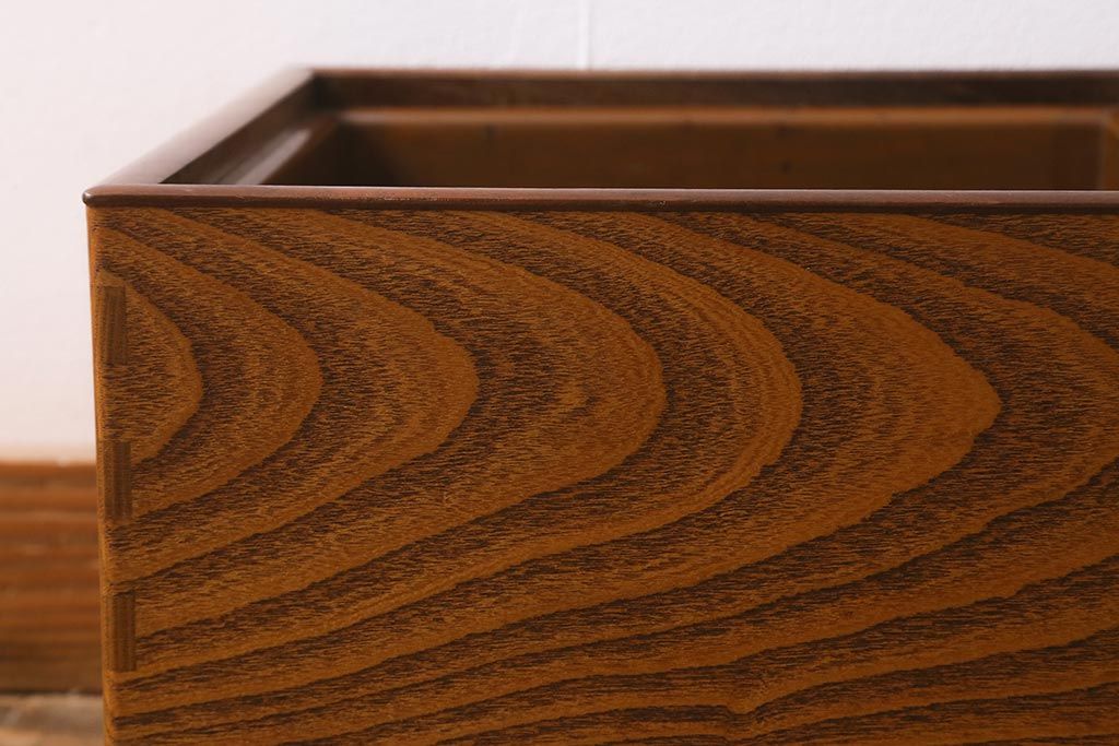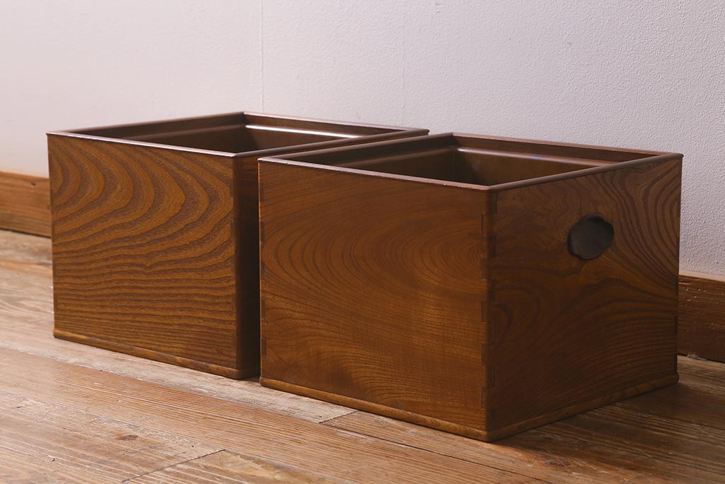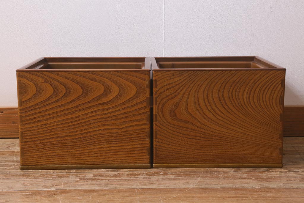 火鉢> 木製火鉢 > アンティーク雑貨 昭和初期 高級品! 桑材 共箱付き 美しい杢目の角火鉢一対(箱火鉢、手あぶり)(R-042074)