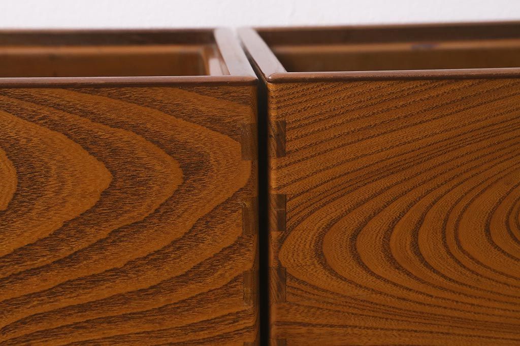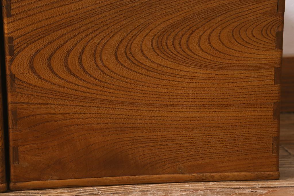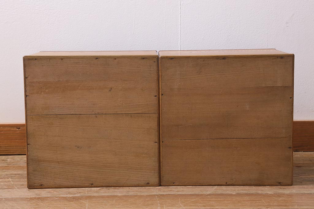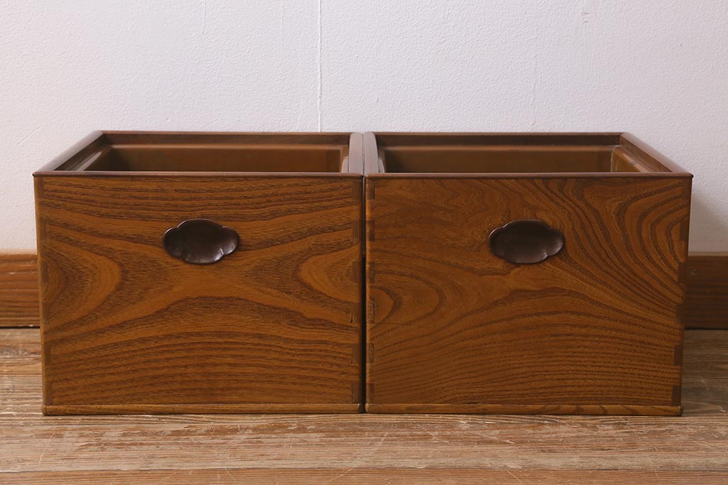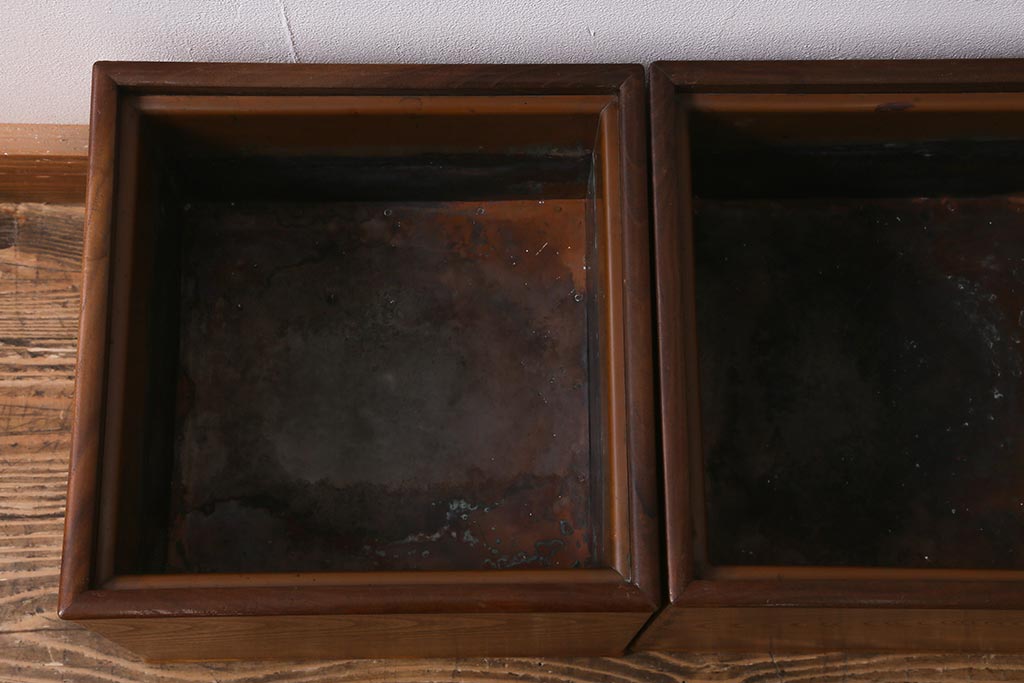 アンティーク雑貨 昭和初期 高級品! 桑材 共箱付き 美しい杢目の角火鉢一対(箱火鉢、手あぶり)(R-042074)