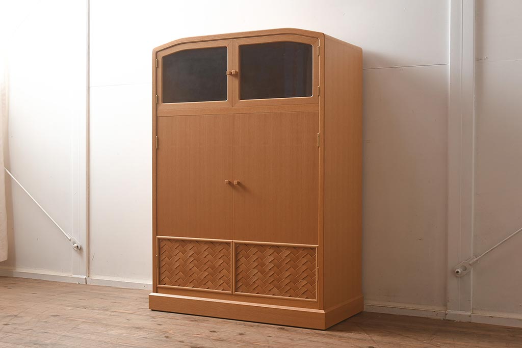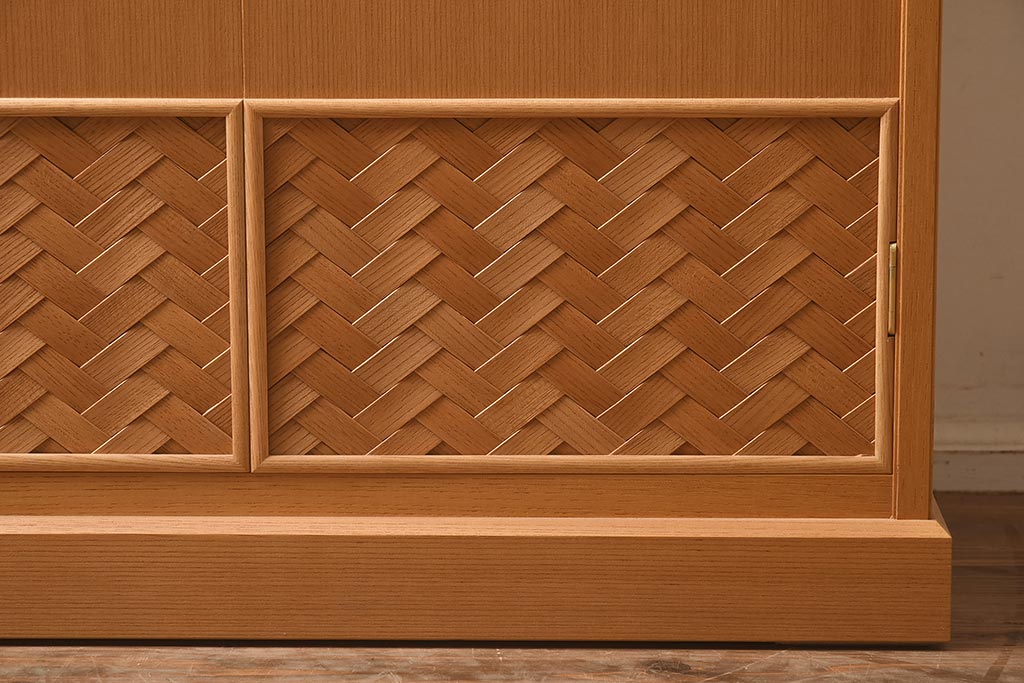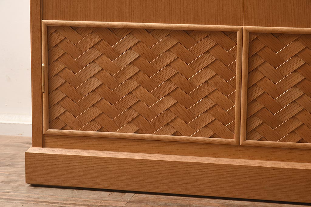 上部のガラス戸と下部の網代編みも