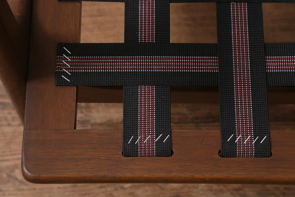 素朴なアイボリーの座面生地とフレームの濃い茶の色合いが