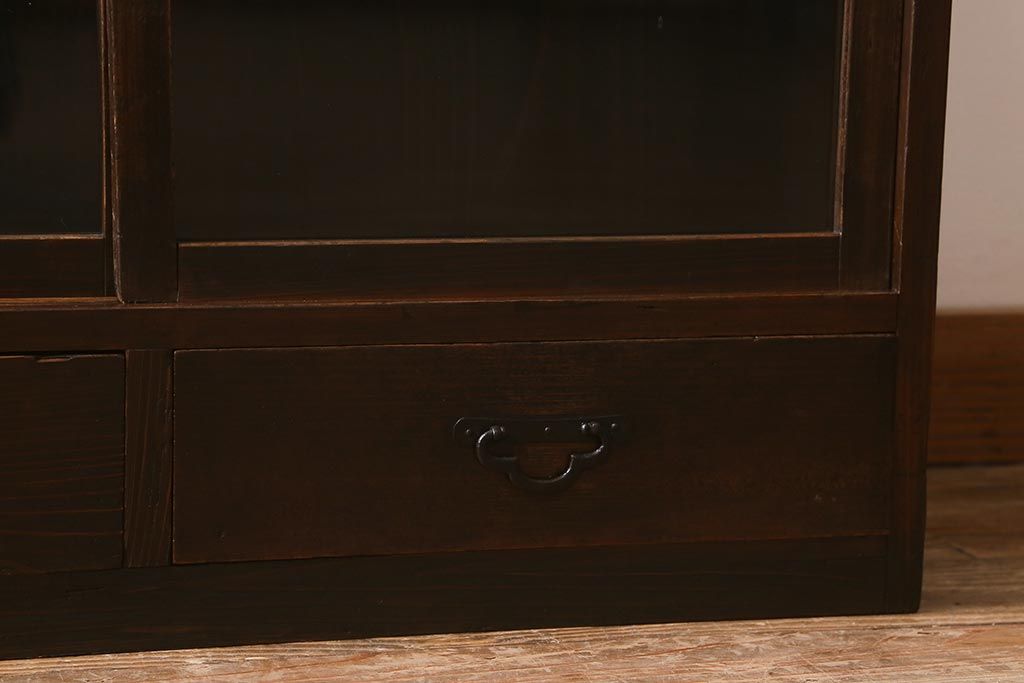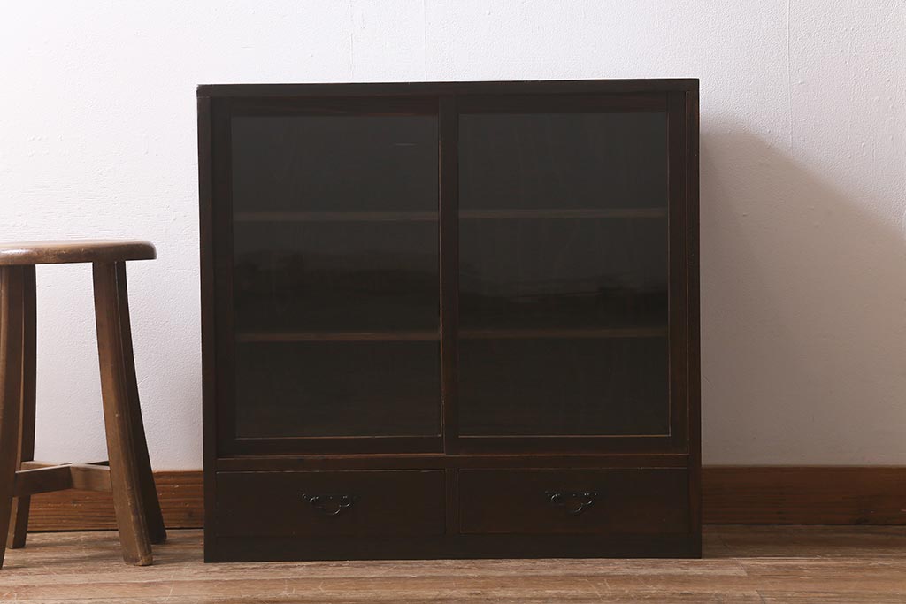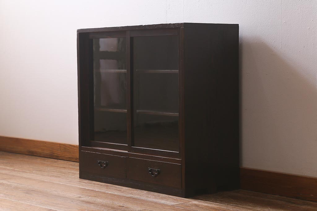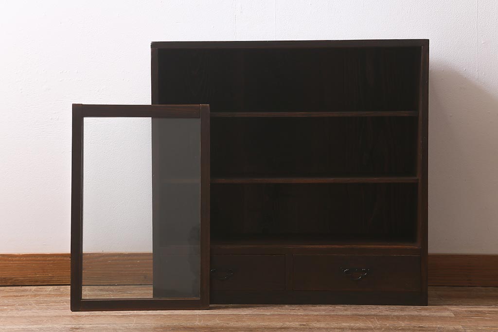 和製アンティークのガラス戸棚です。