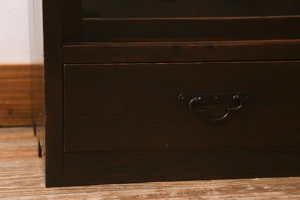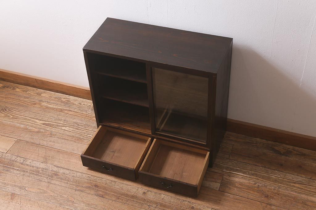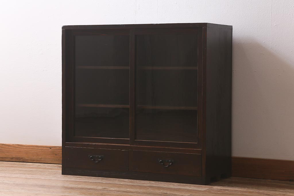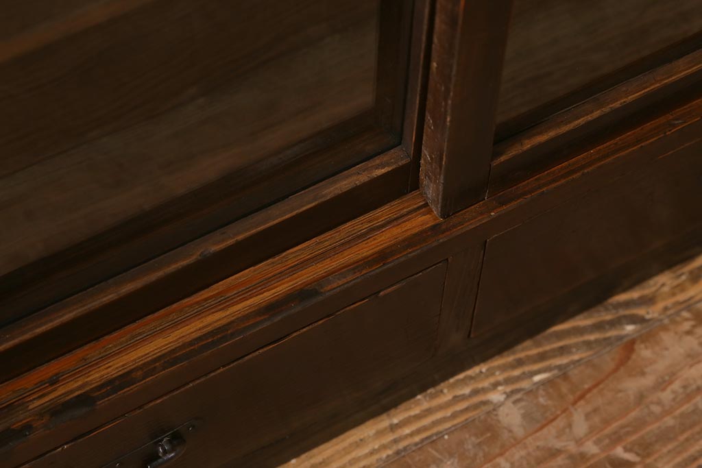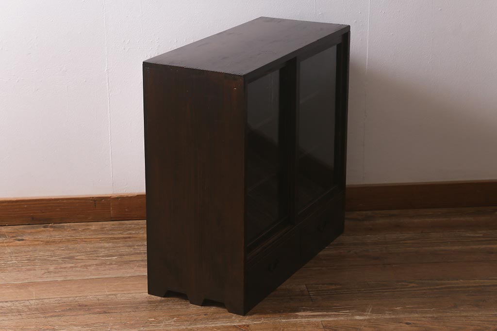和製アンティークのガラス戸棚です。