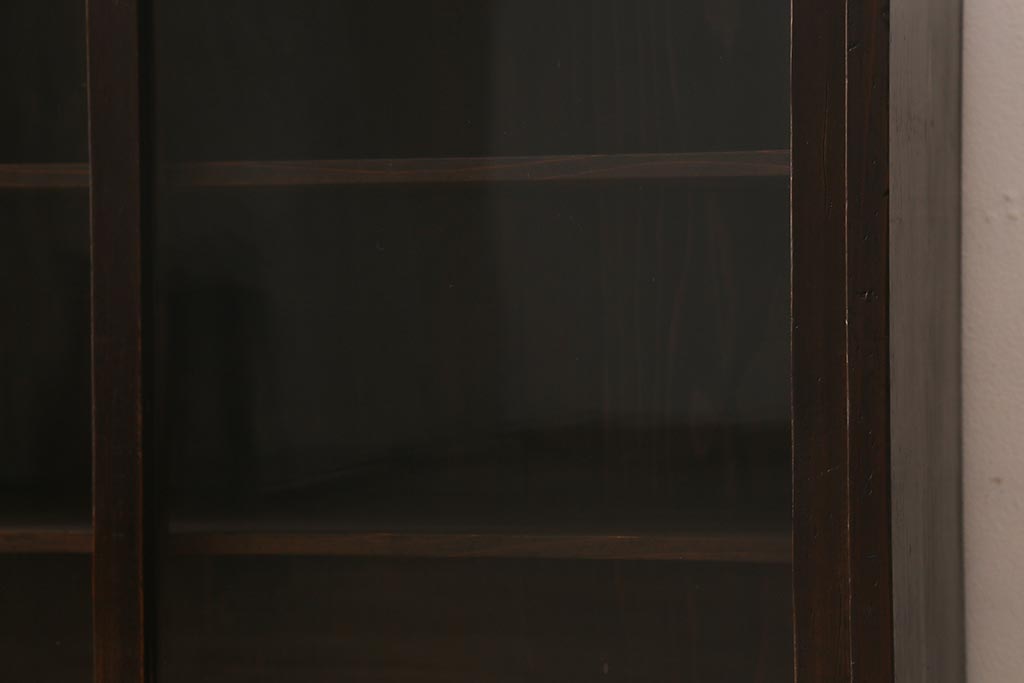 和製アンティーク 大正昭和初期 落ち着いた木色がシックなガラス戸棚(戸棚、飾り棚、収納棚、食器棚)(R-042244)