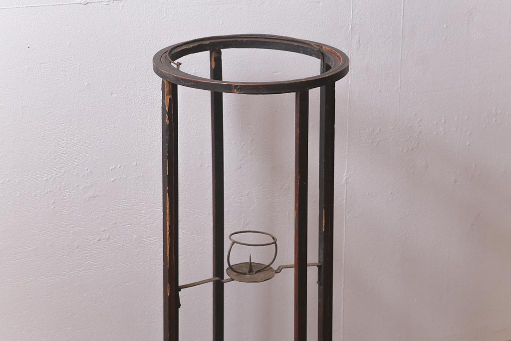 和製アンティーク 古民具 江戸期 経年の風合いが趣のある遠州行灯(丸行灯、行燈、照明、スタンド)(R-042054)です。