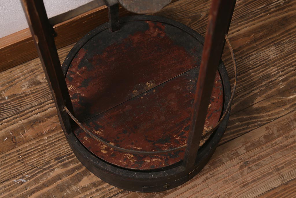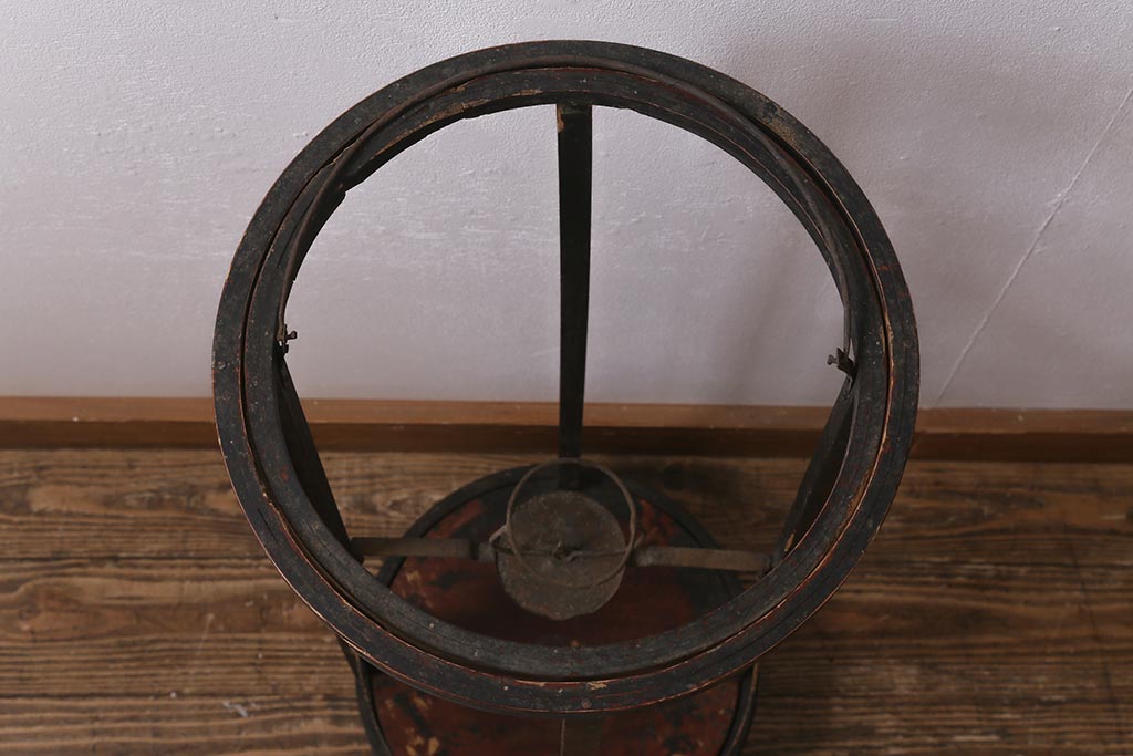 和製アンティーク 古民具 江戸期 経年の風合いが趣のある遠州行灯(丸行灯、行燈、照明、スタンド)(R-042054)