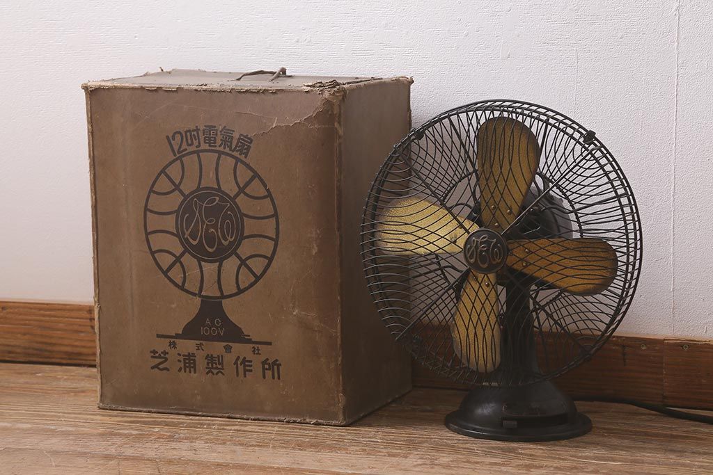 アンティーク雑貨 芝浦製作所(SEW) TOSHIBA レア 箱付き 12インチ 鉄製 昭和レトロな扇風機(ファン)(R‐042176)