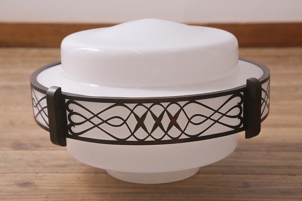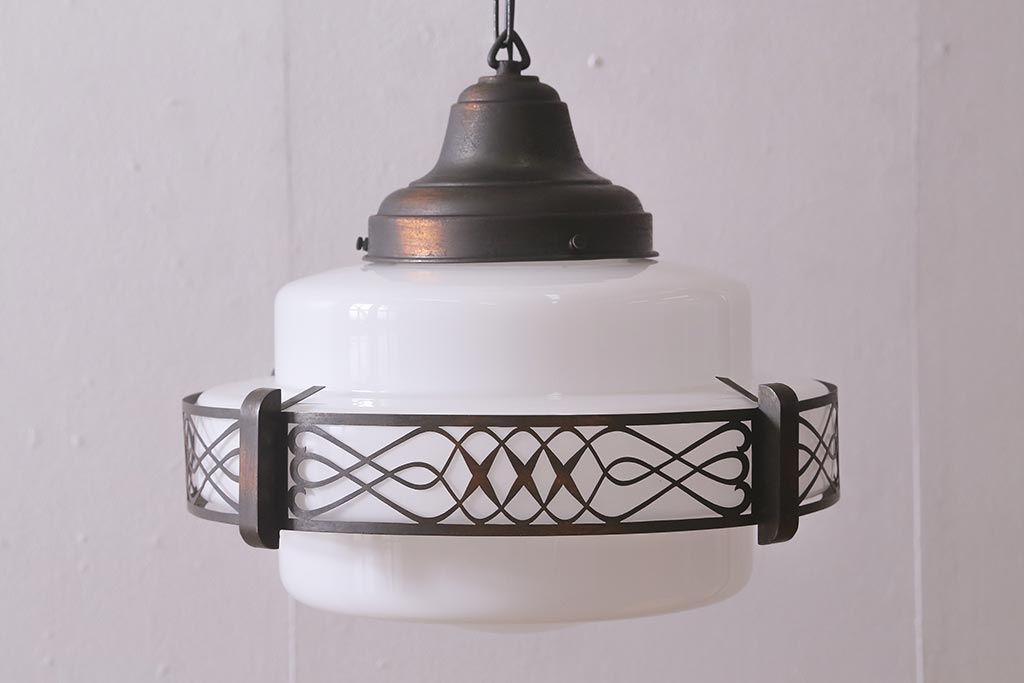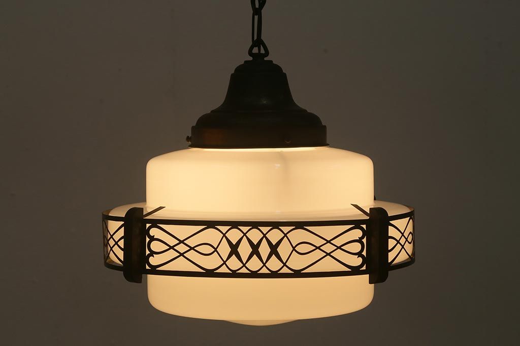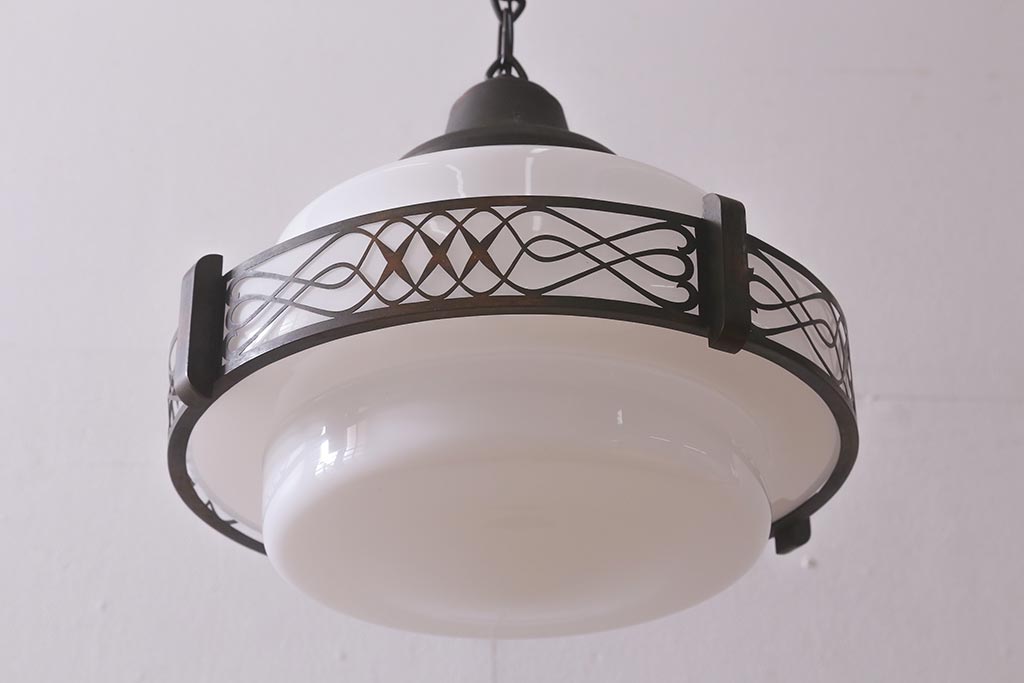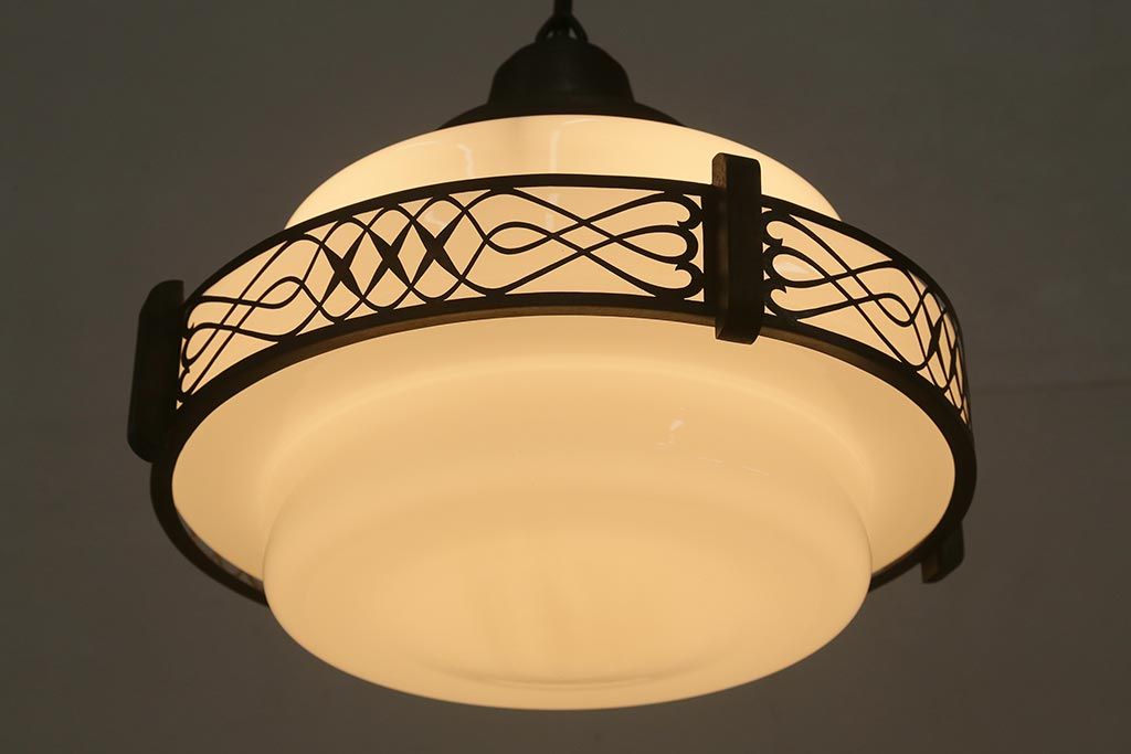 アンティーク照明 昭和初期 真鍮飾りが趣のある天井照明(吊り下げ照明、ペンダントライト)(R-042095)