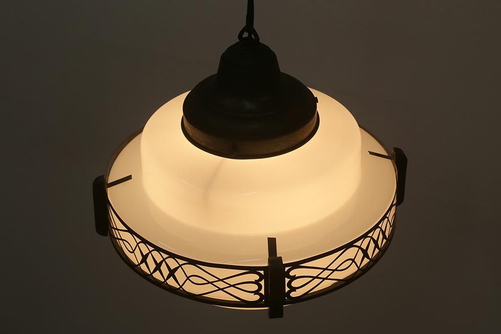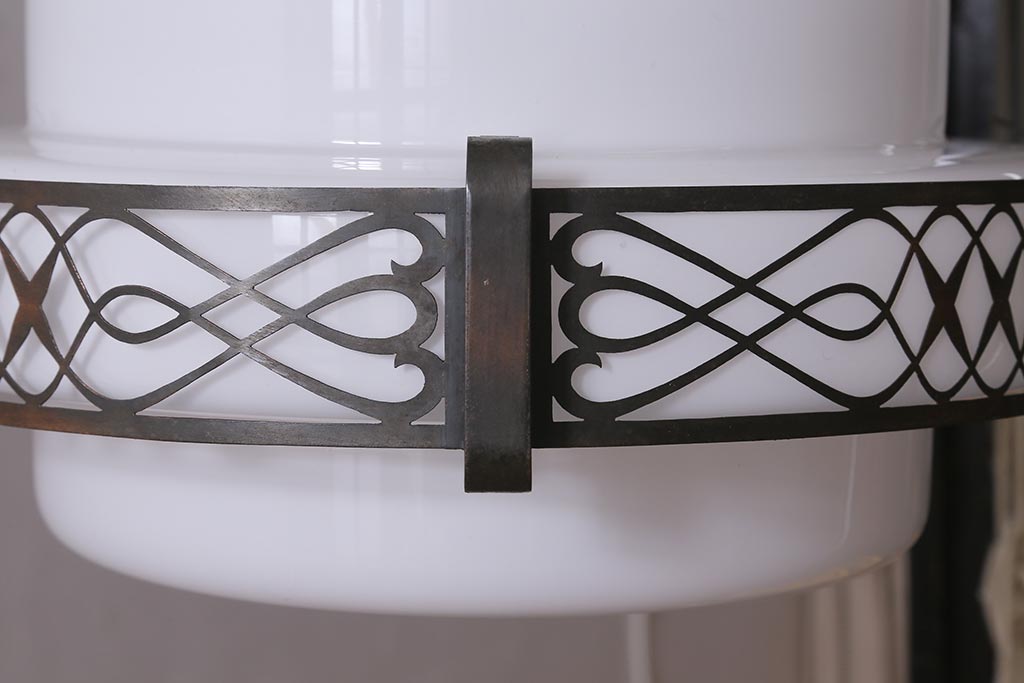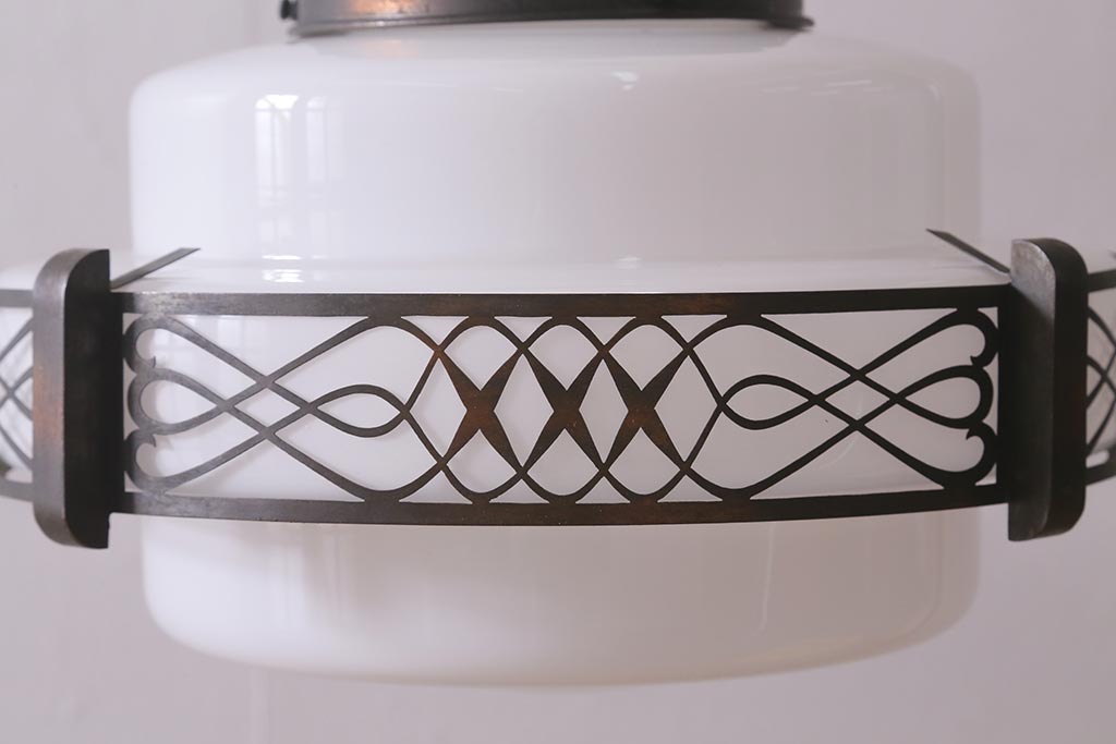 アンティーク照明 昭和初期 真鍮飾りが趣のある天井照明(吊り下げ照明、ペンダントライト)(R-042095)です。