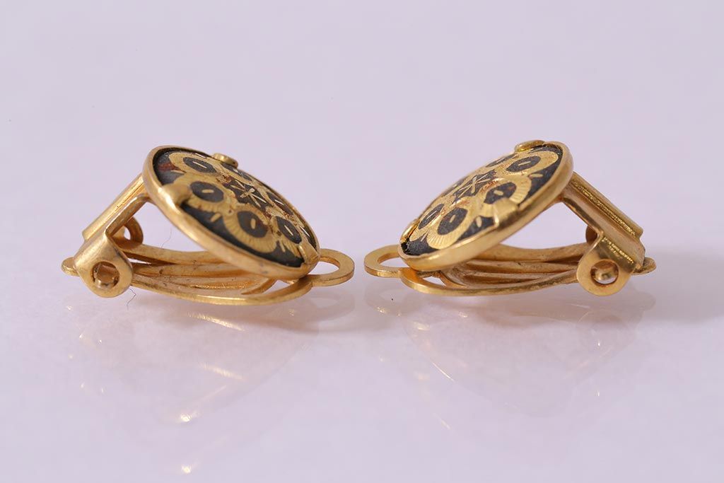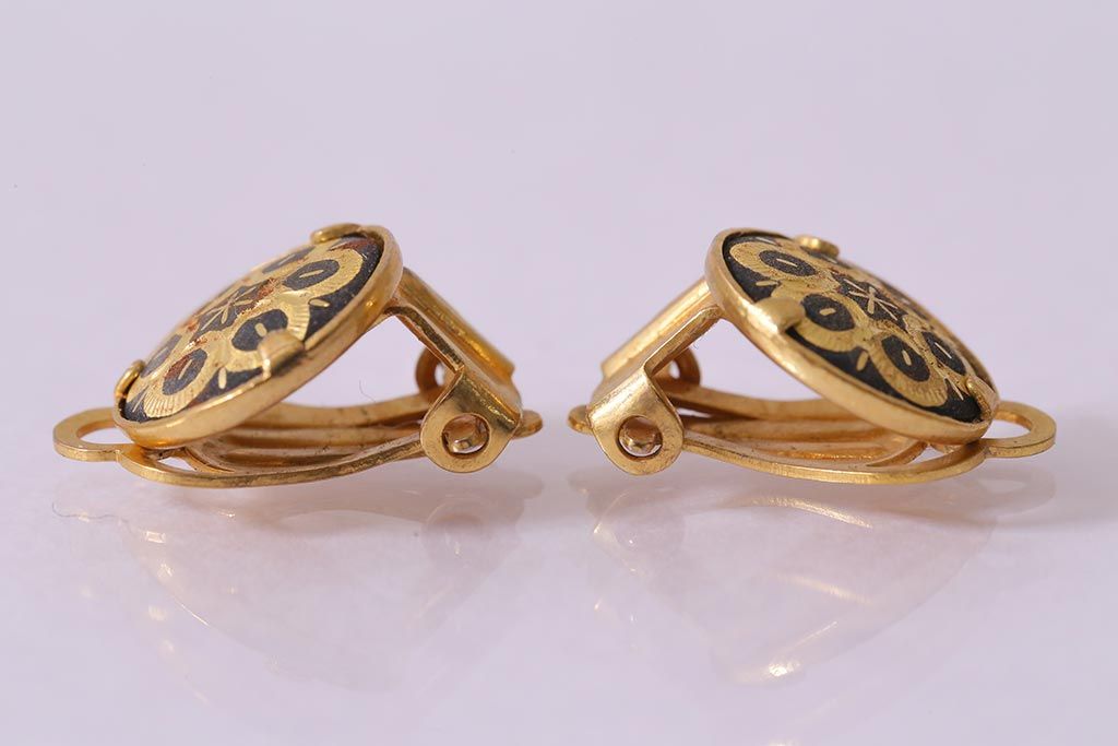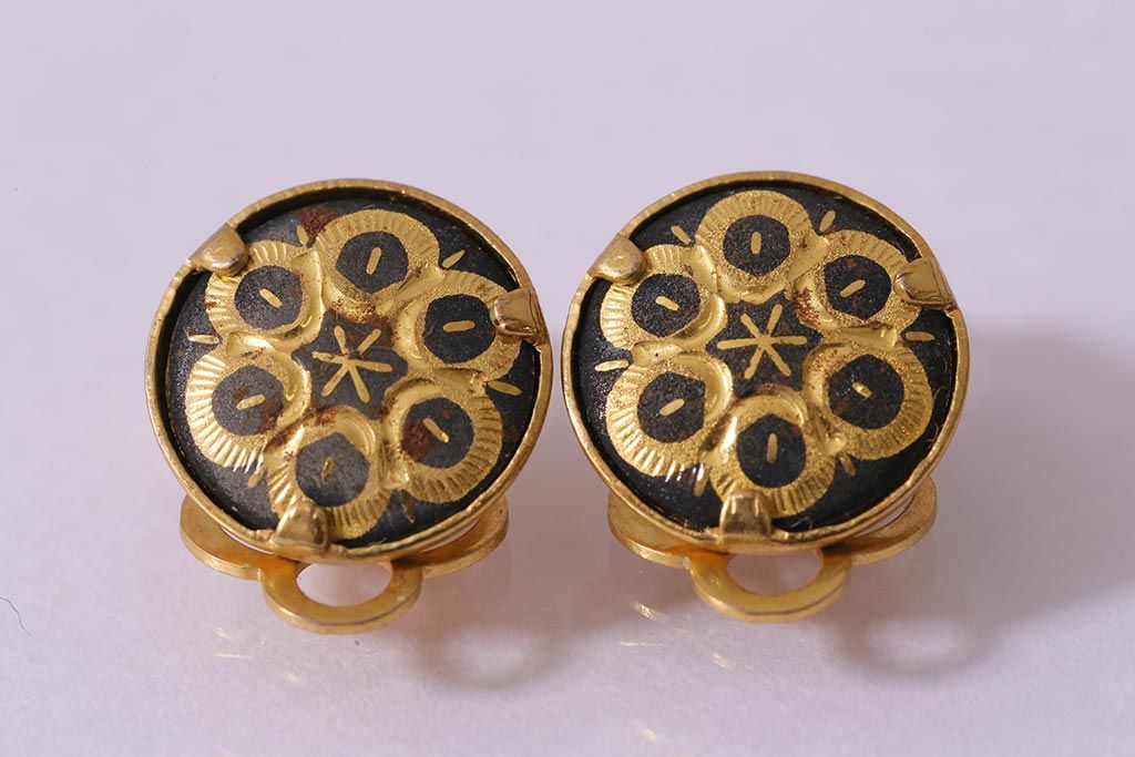 ラフジュ工房> アクセサリー> イヤリング > ヴィンテージ 昭和期 黒とゴールドのカラーが大人っぽい丸型イヤリング(アクセサリー、ビンテージ)(R-041934)