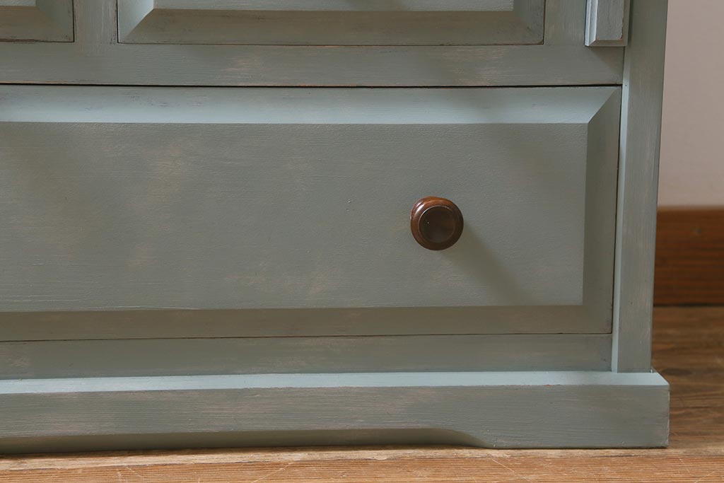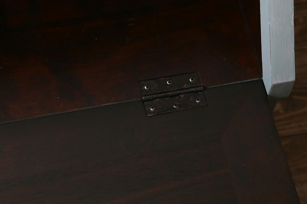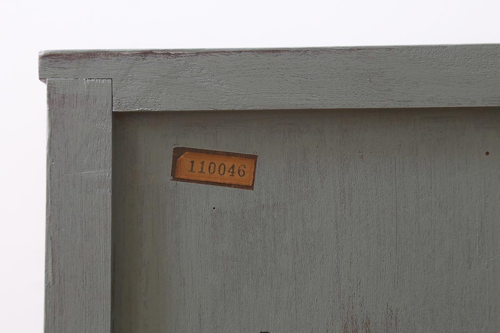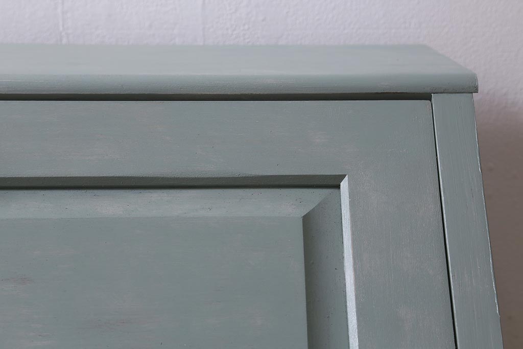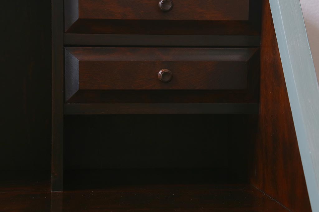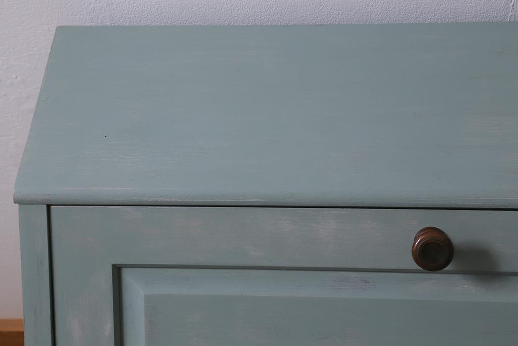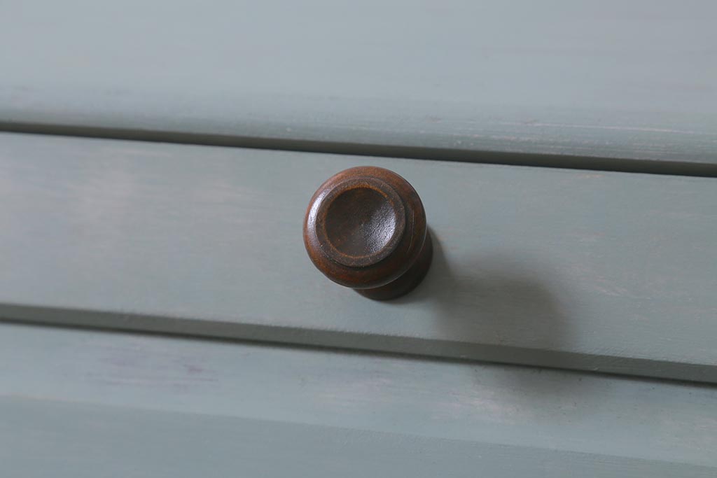 中古 北海道民芸家具 グレイッシュなカラーがおしゃれなペイントライティングビューロー(机、引き出し)(R-042219)