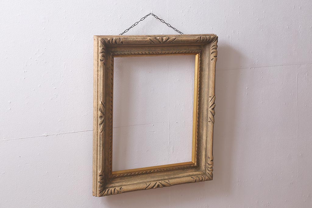 雑貨> 額縁 > アンティーク雑貨 昭和初期 木彫りがお洒落なフレーム(額縁、ディスプレイ)(R-042172)