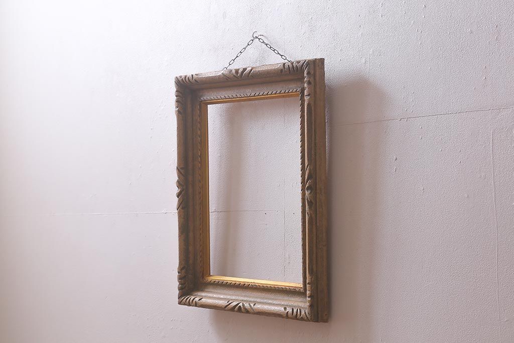 アンティーク雑貨 昭和初期 木彫りがお洒落なフレーム(額縁、ディスプレイ)(R-042172)です。