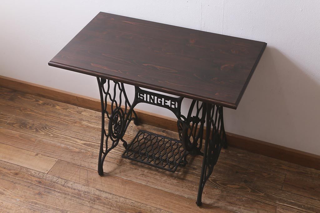 テーブル> 鉄脚テーブル > シンガー社(SINGER) ヒノキ材 リメイク お洒落なインテリアにおすすめなミシンテーブル(シンガーミシン、サイドテーブル、カフェテーブル、ミシン台)(R-042228)