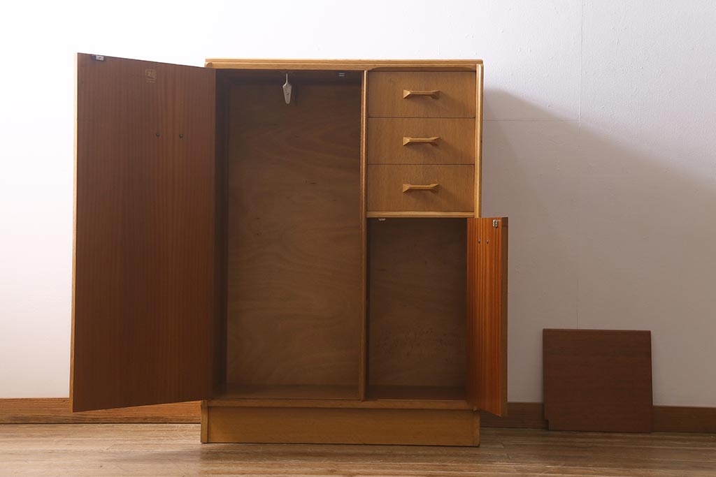 ラフジュ工房> ワードローブ・ロッカー> ワードローブ > ヴィンテージ家具 北欧家具 オーク材 G-PLAN(ジープラン) Brandon(ブランドン) ハンガー掛け付きのスモールワードローブ(ビンテージ)(R-042169)