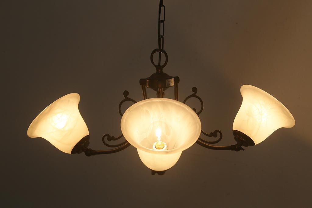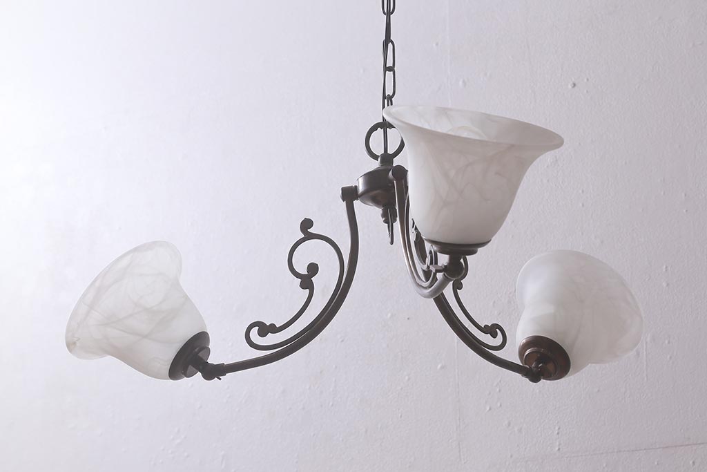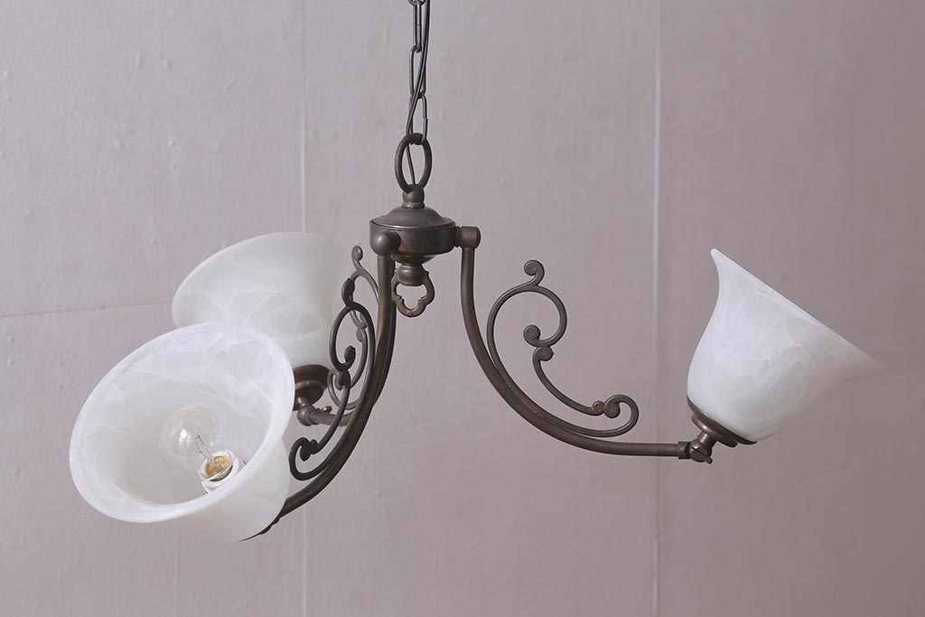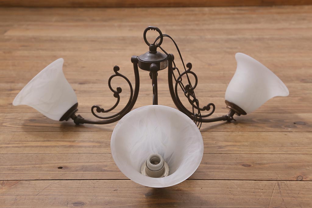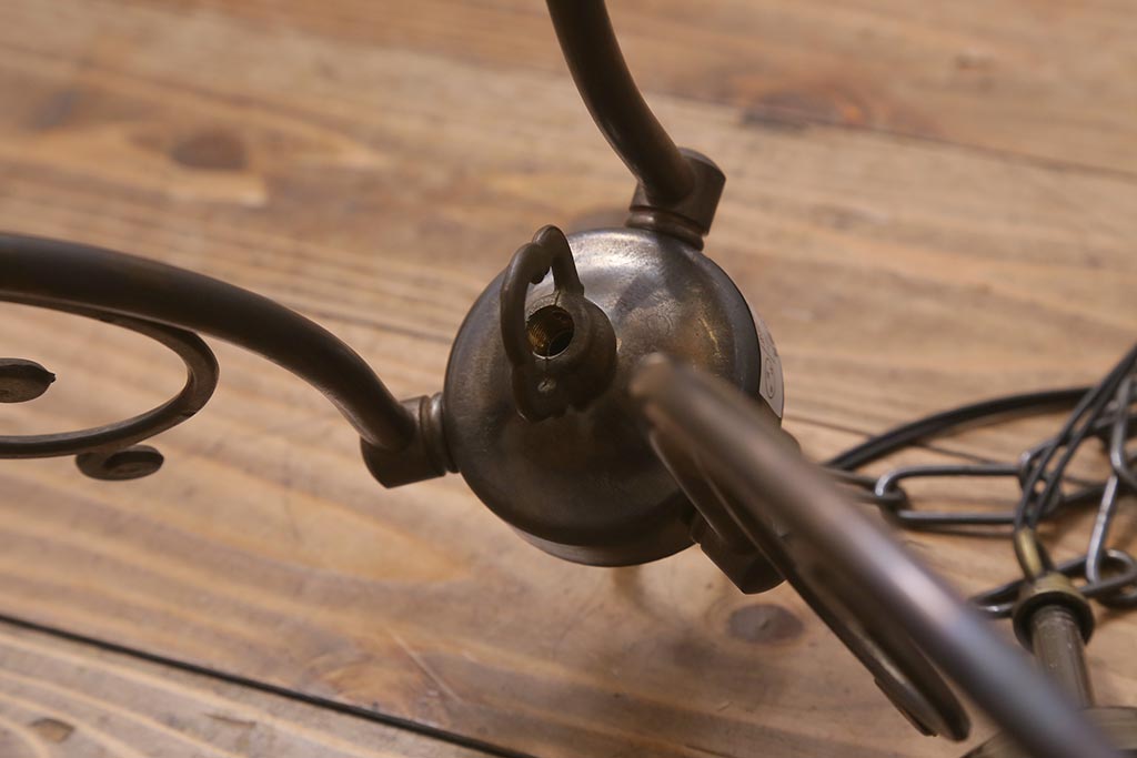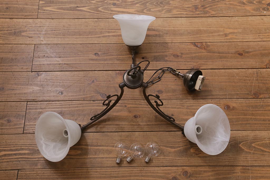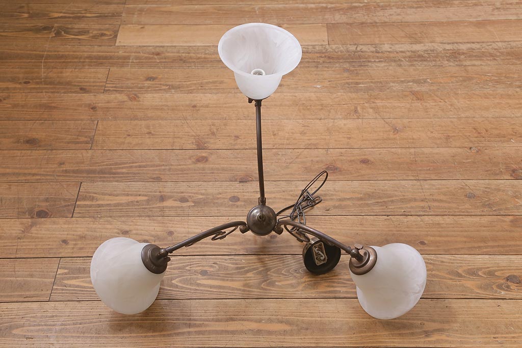 中古 アンティーク調 真鍮製 シェードの角度が変えられる3灯シャンデリア(天井照明、吊り下げ照明)(R-042256)