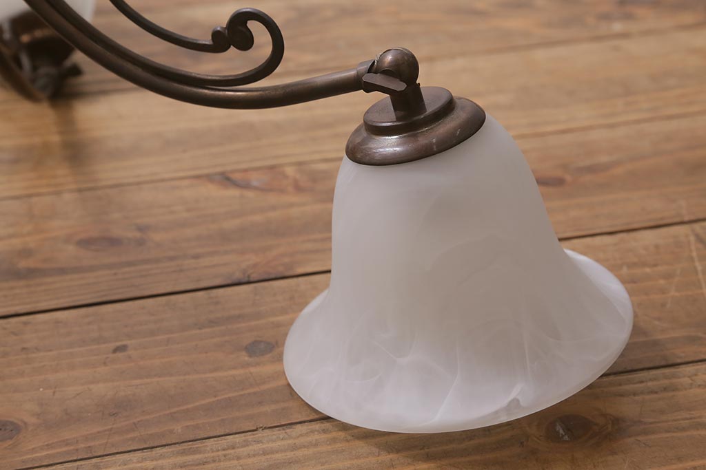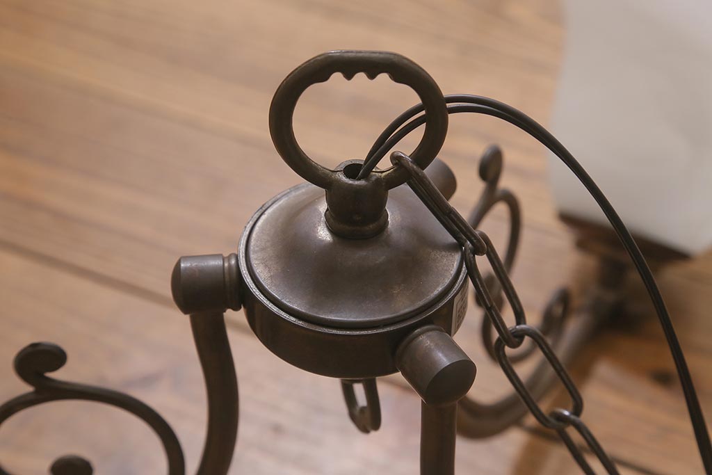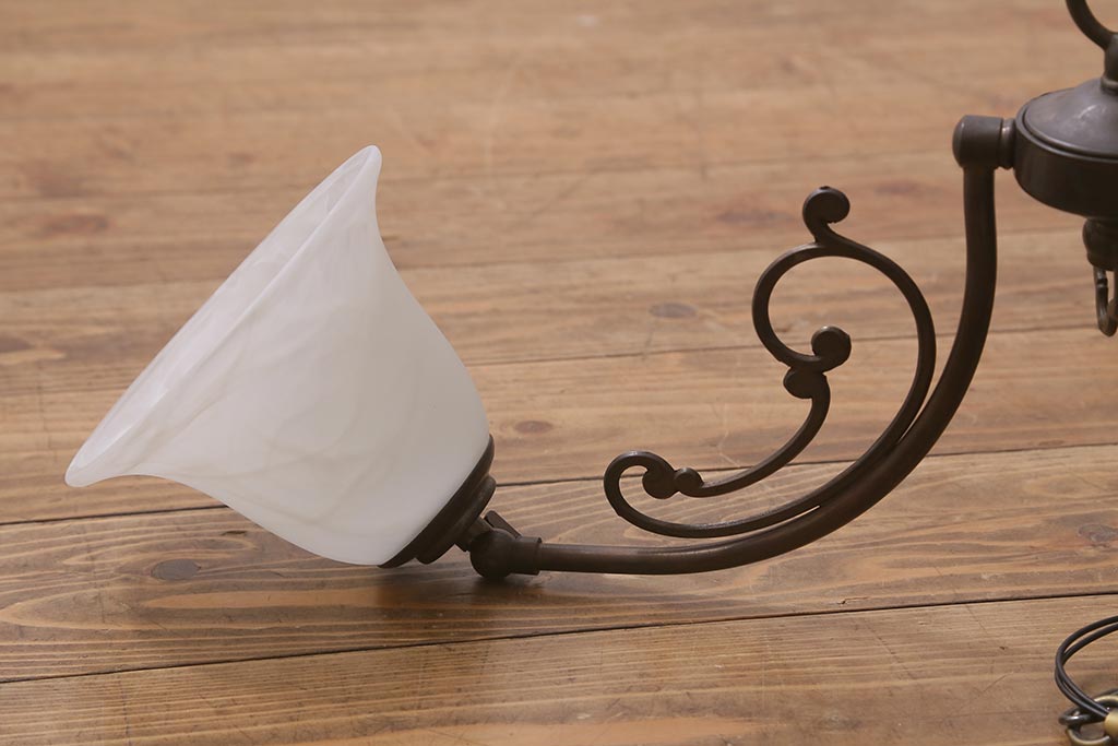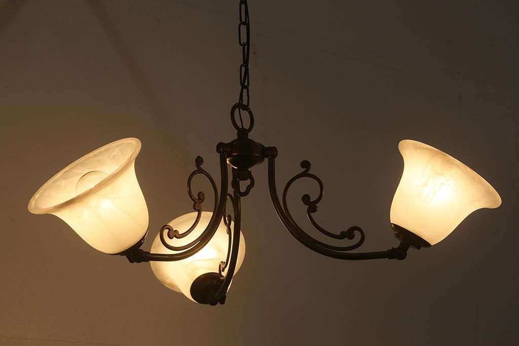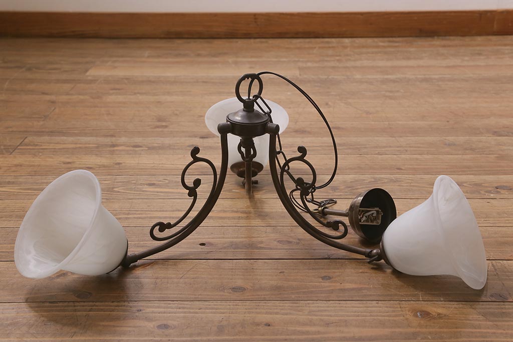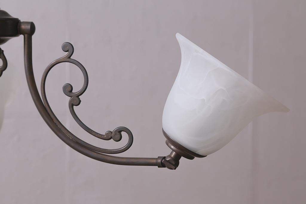 中古 アンティーク調 真鍮製 シェードの角度が変えられる3灯シャンデリア(天井照明、吊り下げ照明)(R-042256)