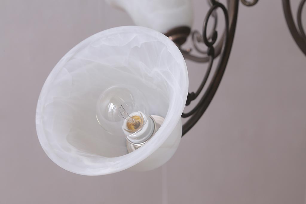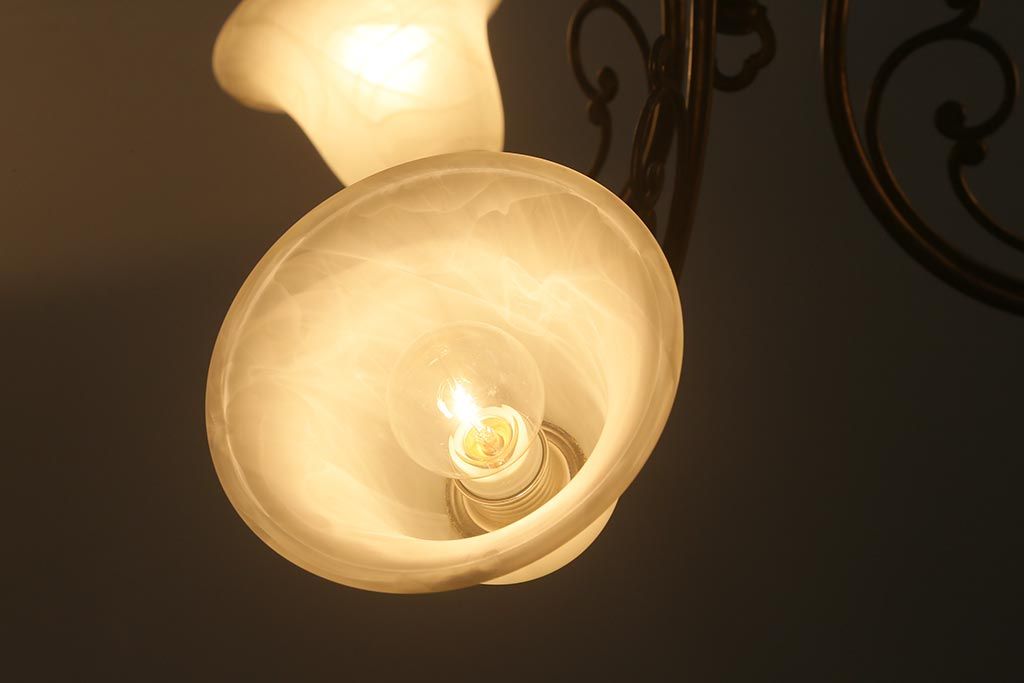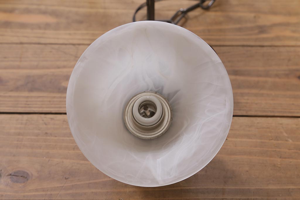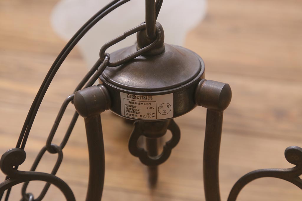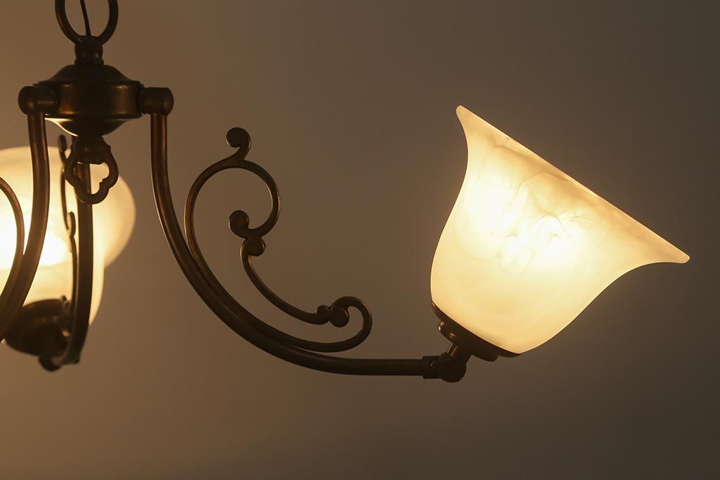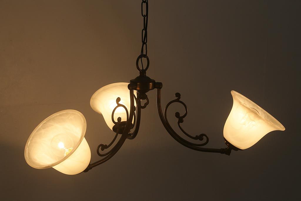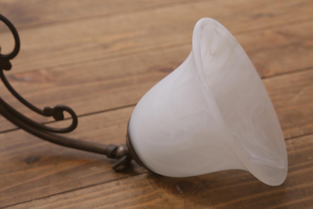 中古 アンティーク調 真鍮製 シェードの角度が変えられる3灯シャンデリア(天井照明、吊り下げ照明)(R-042256)