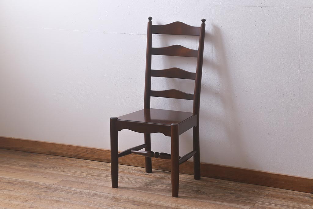 椅子・ベンチ> ダイニングチェア > 中古 松本民芸家具 艶のある木肌が上品なラダーバックチェア(ダイニングチェア、板座、椅子)(R-042271)