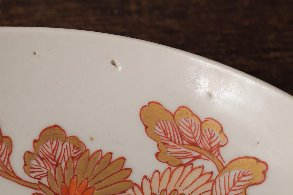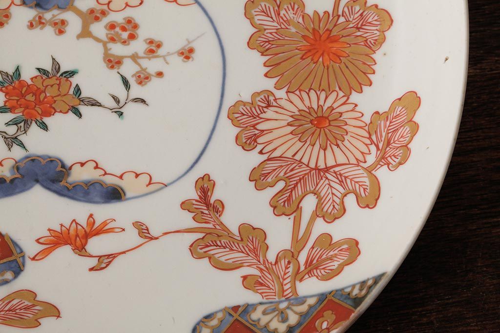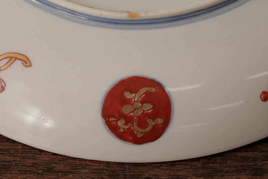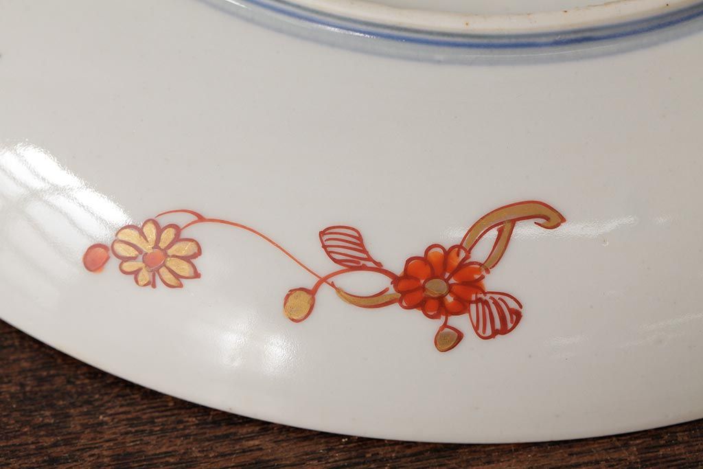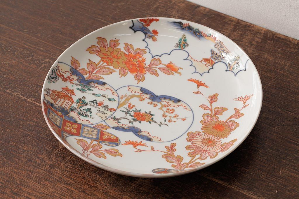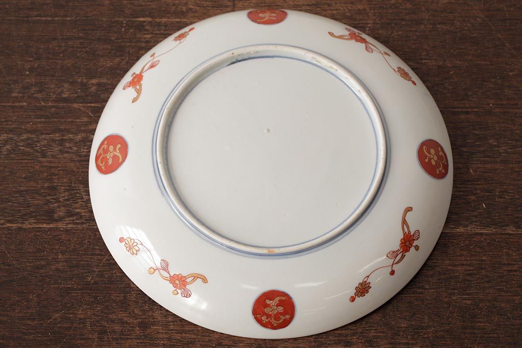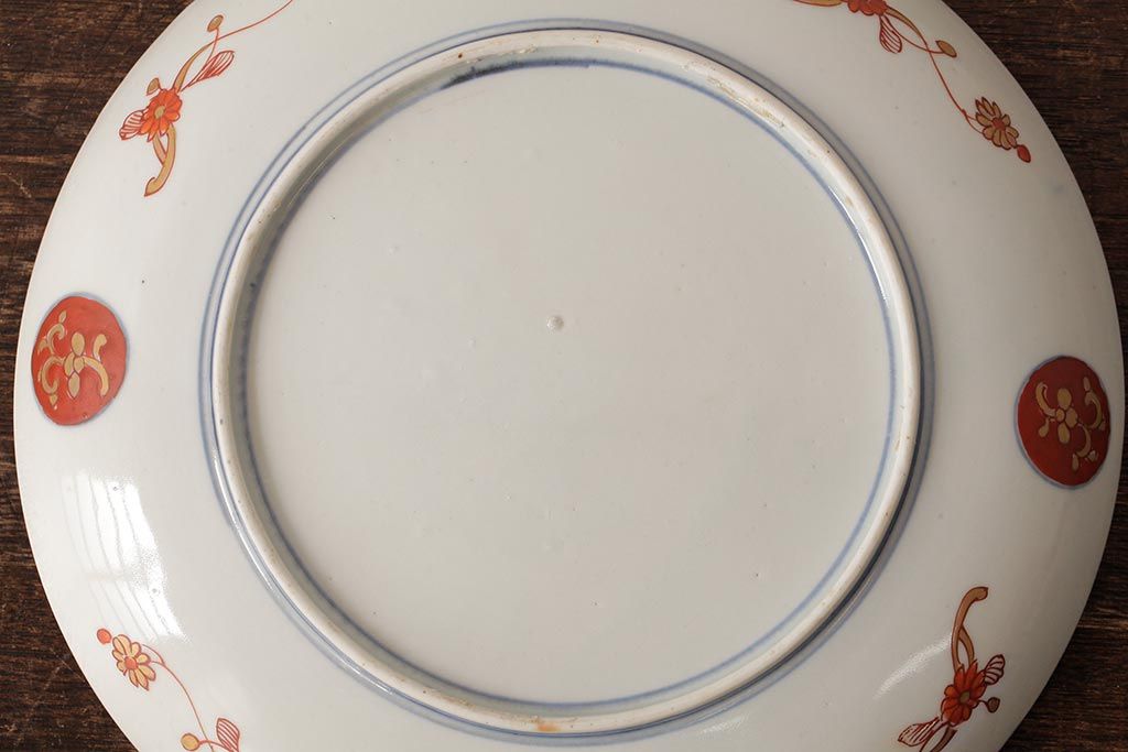 ラフジュ工房> 骨董・美術品> 骨董-陶磁器 > 江戸期 伊万里焼 金彩色絵染付八寸皿(窓絵、8寸皿、大皿、古伊万里、和食器)(R-042310)