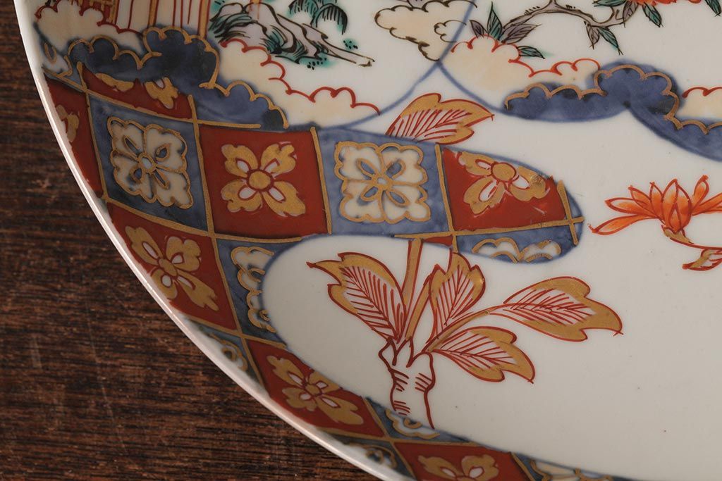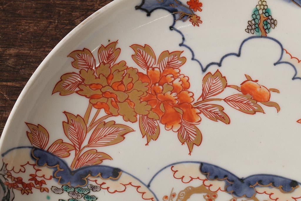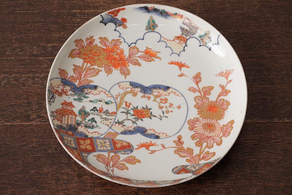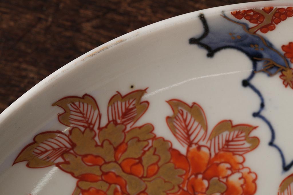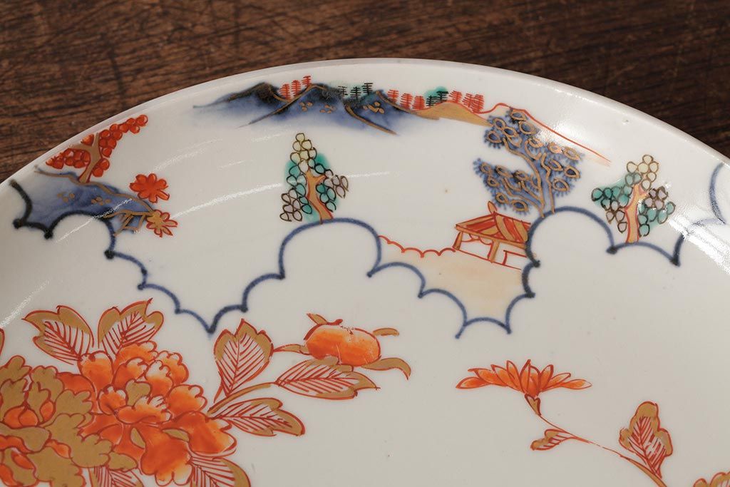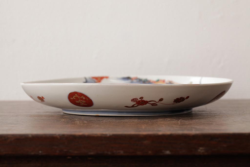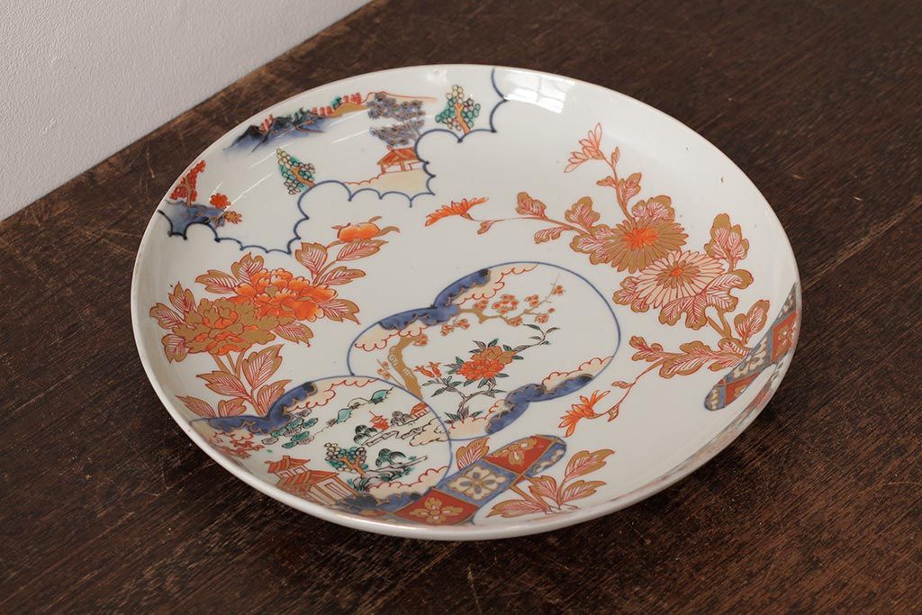 ラフジュ工房> 和食器・茶道具> 皿 > 江戸期 伊万里焼 金彩色絵染付八寸皿(窓絵、8寸皿、大皿、古伊万里、和食器)(R-042310)