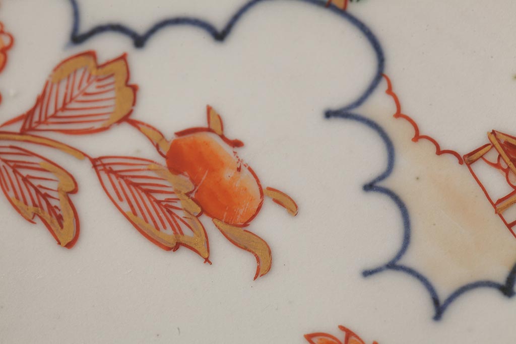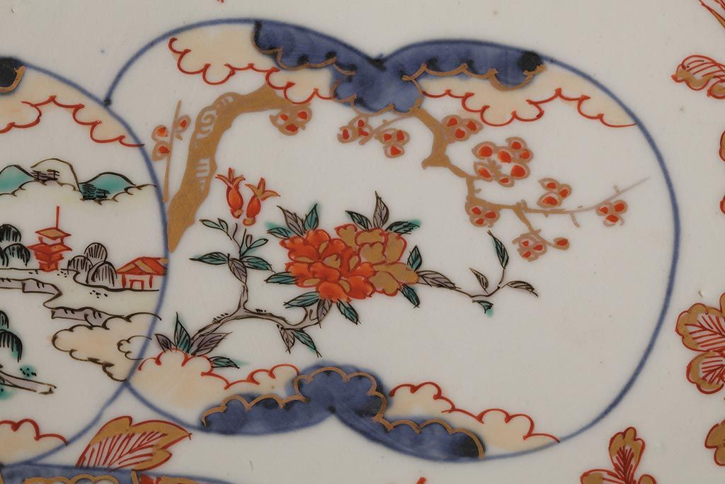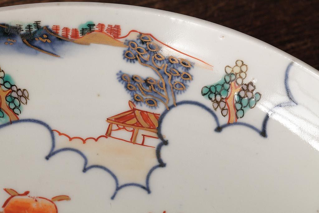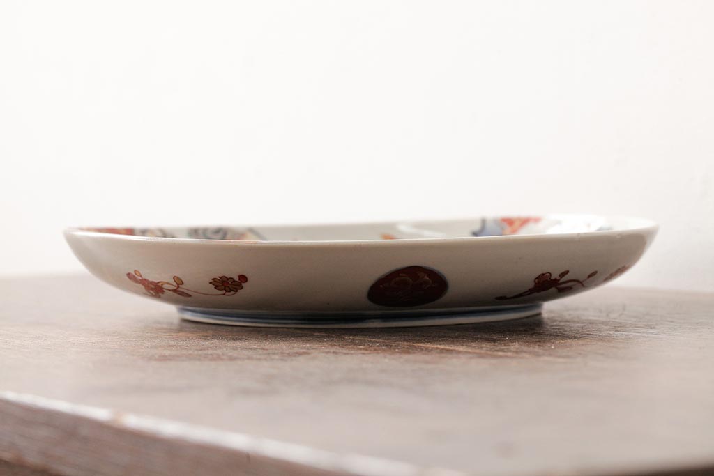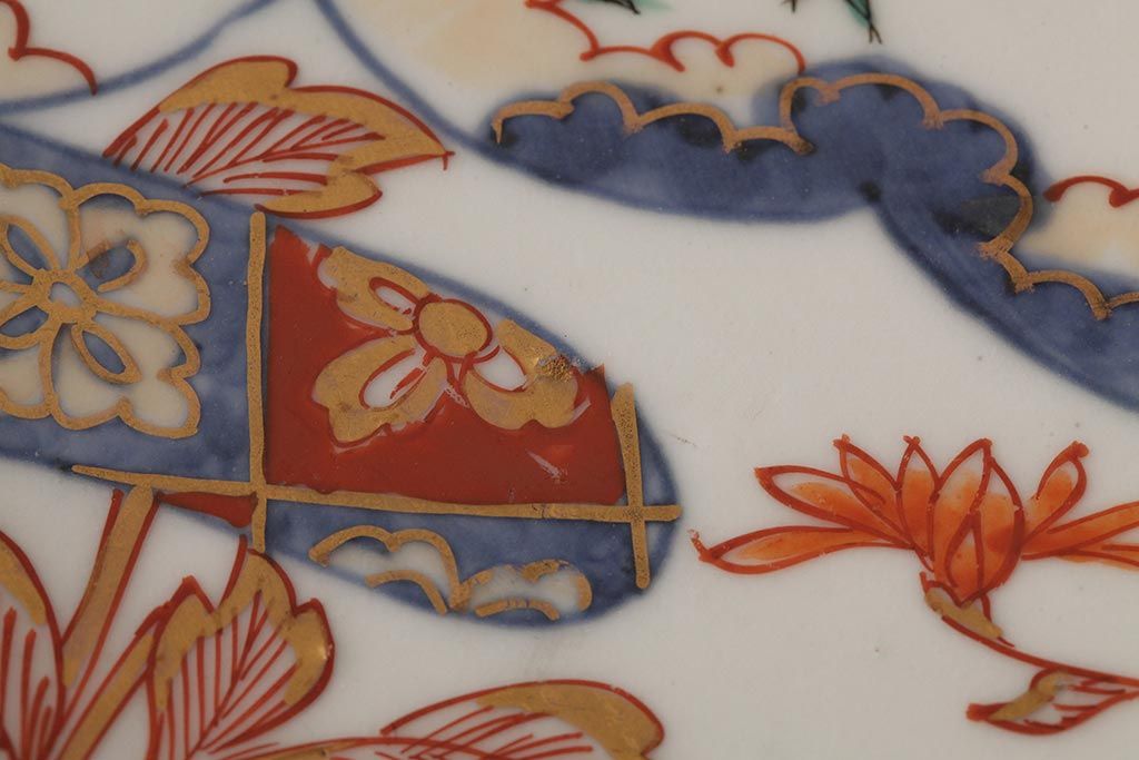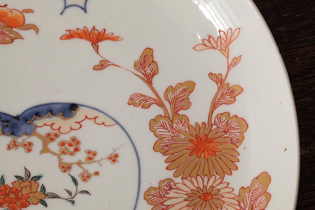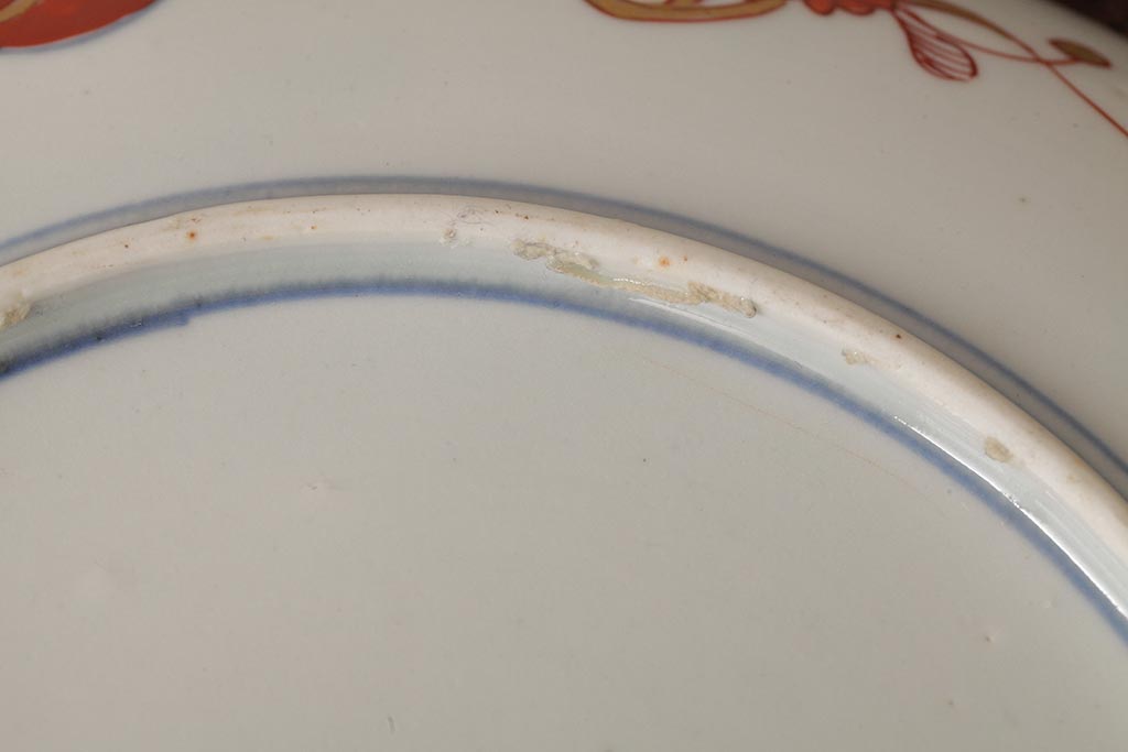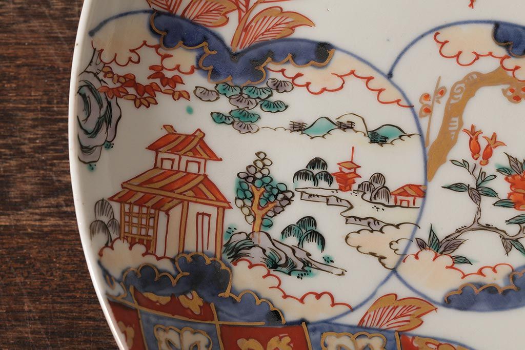 ラフジュ工房> 和食器・茶道具> 皿 > 江戸期 伊万里焼 金彩色絵染付八寸皿(窓絵、8寸皿、大皿、古伊万里、和食器)(R-042310)