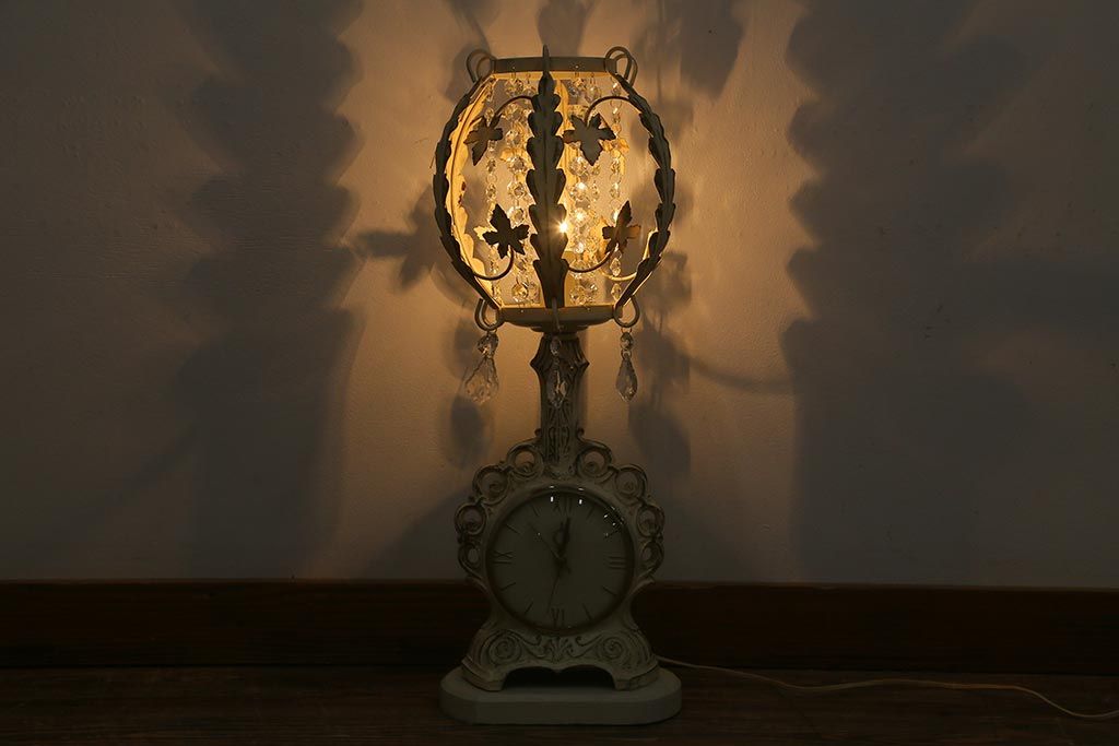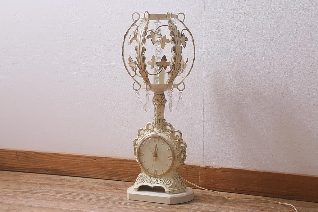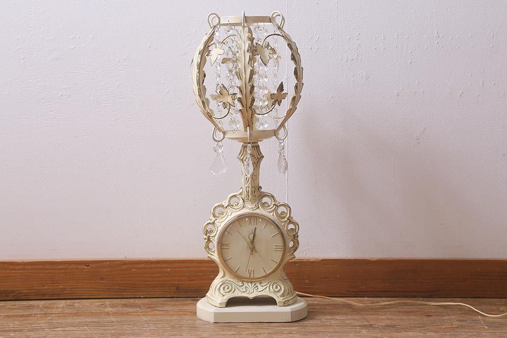 アメリカヴィンテージ united Clock(ユナイテッドクロック) アンティークテイストなランプ付き置時計(照明、スタンドライト、ビンテージ)(R-042260)