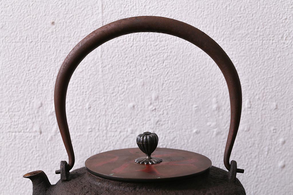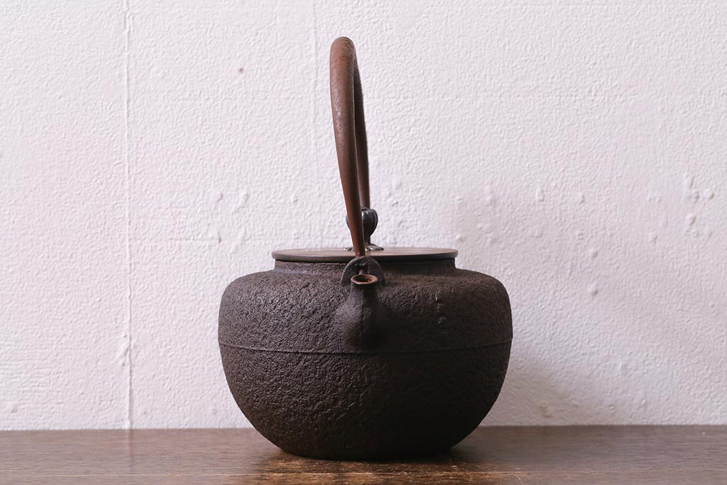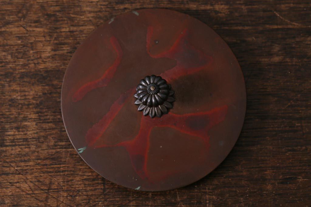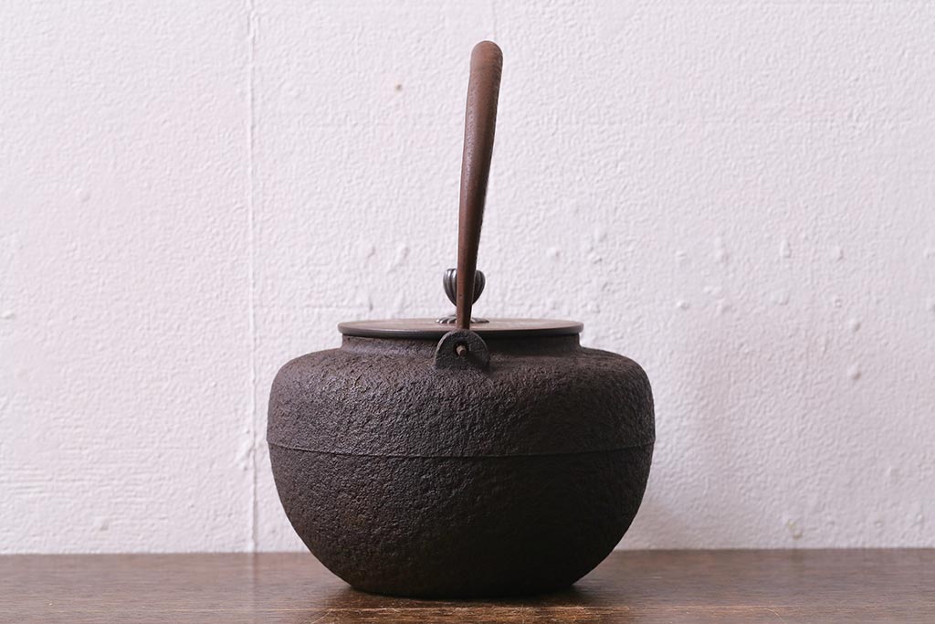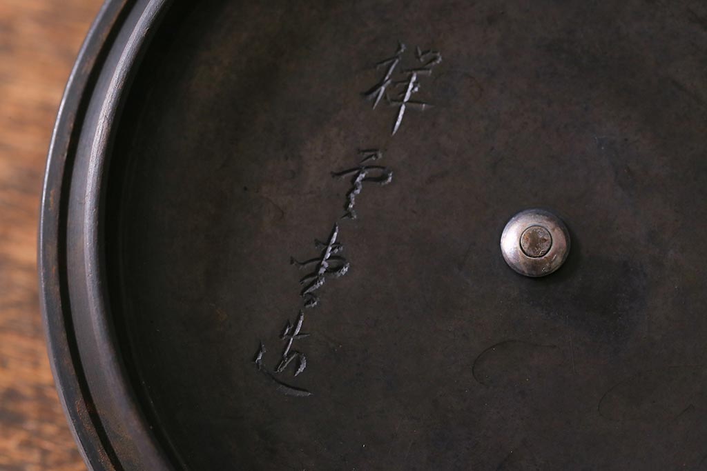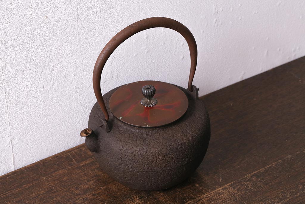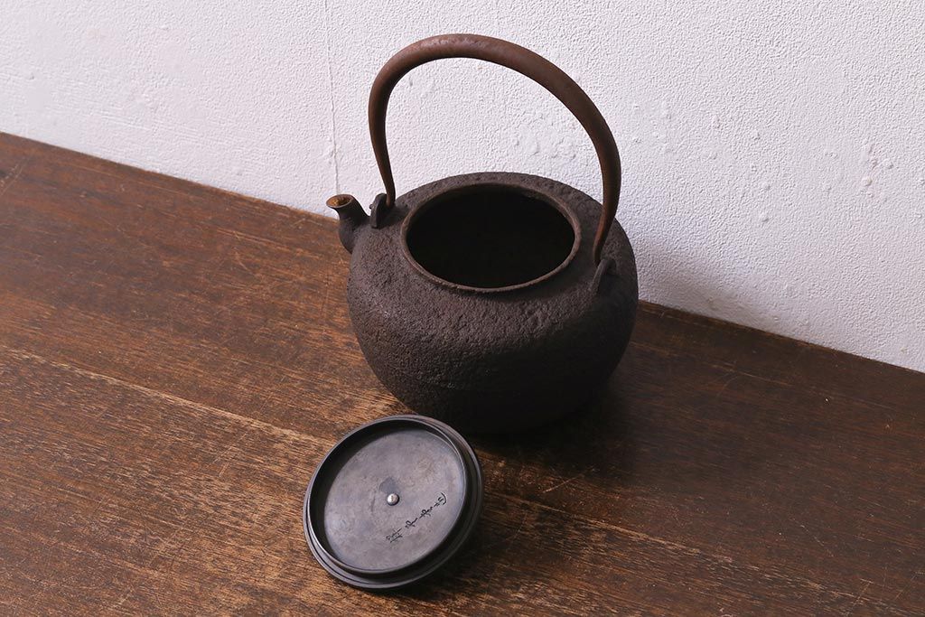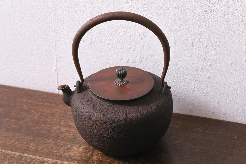 アンティーク雑貨 古民具 明治大正期 祥雪堂 造 鉄瓶(斑紫銅蓋、鉄ビン、茶道具)(R-041606)
