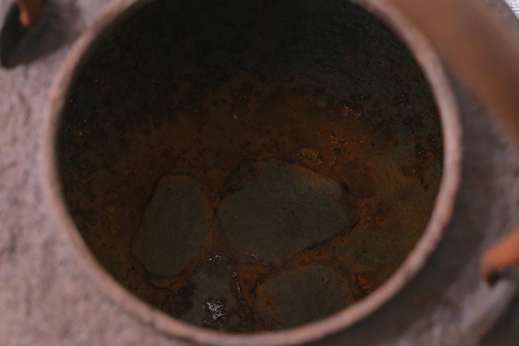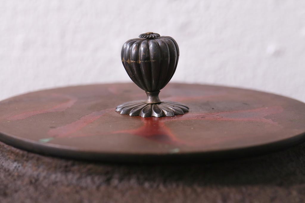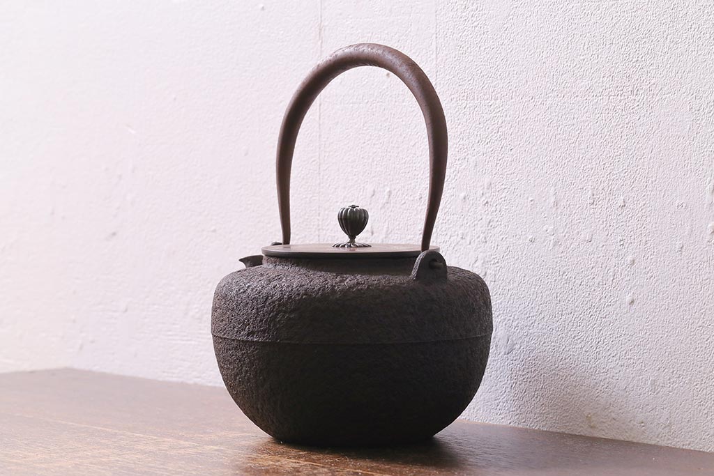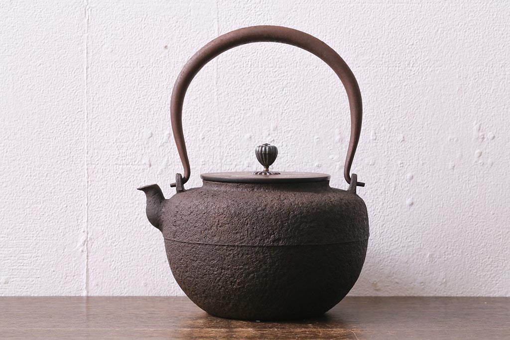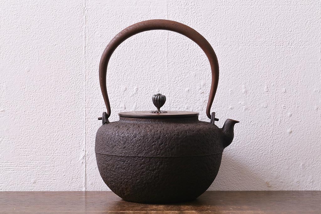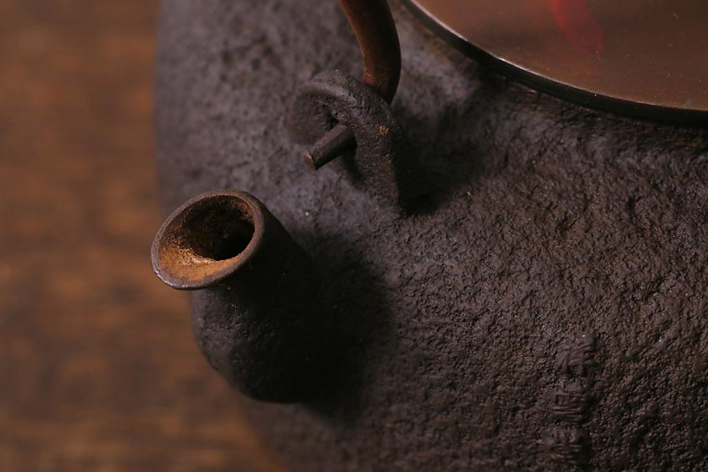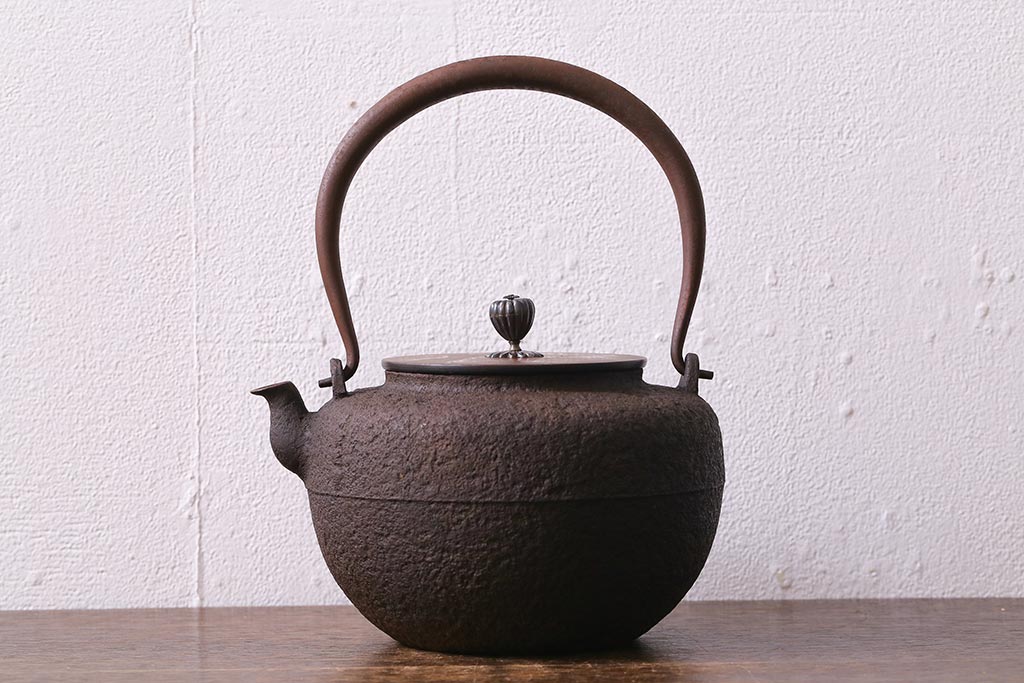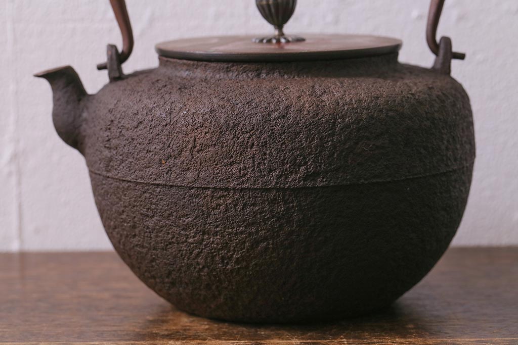 アンティーク雑貨 古民具 明治大正期 祥雪堂 造 鉄瓶(斑紫銅蓋、鉄ビン、茶道具)(R-041606)