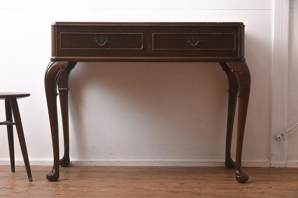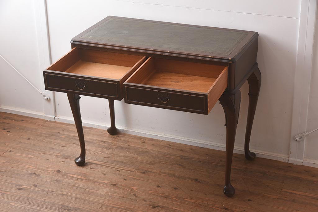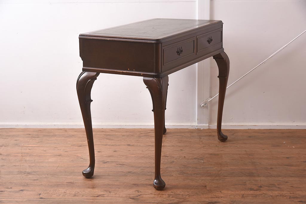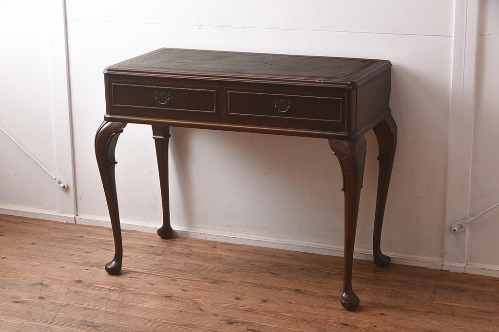 デスク> ワークデスク > アンティーク家具 イギリスアンティーク レザートップ 猫脚のコンソールデスク(机、在宅ワーク、在宅用コンソールテーブル)(R-042234)
