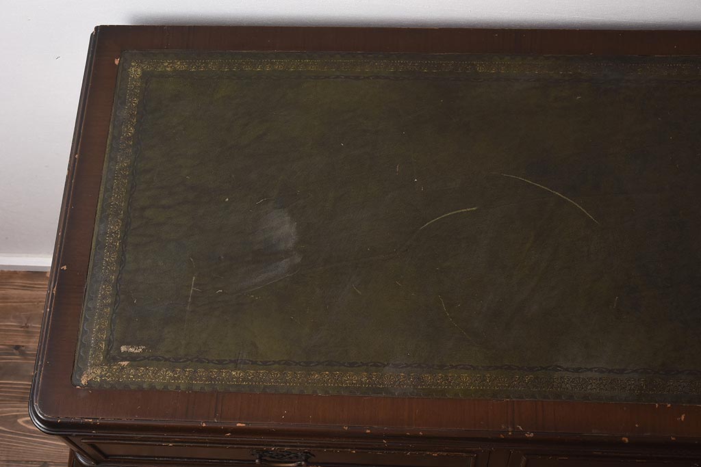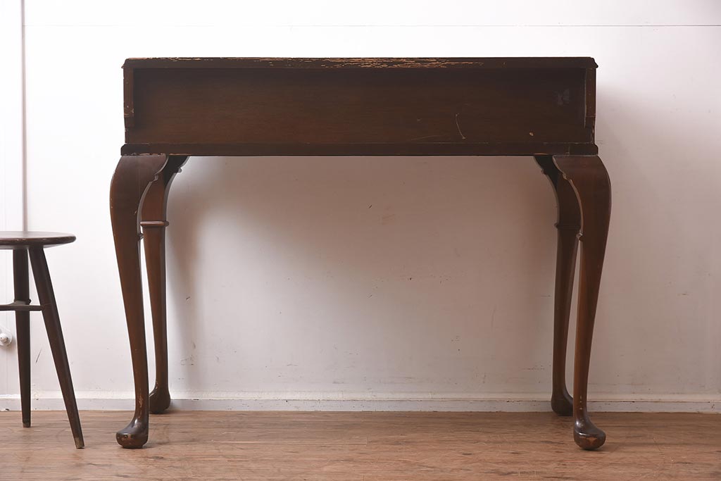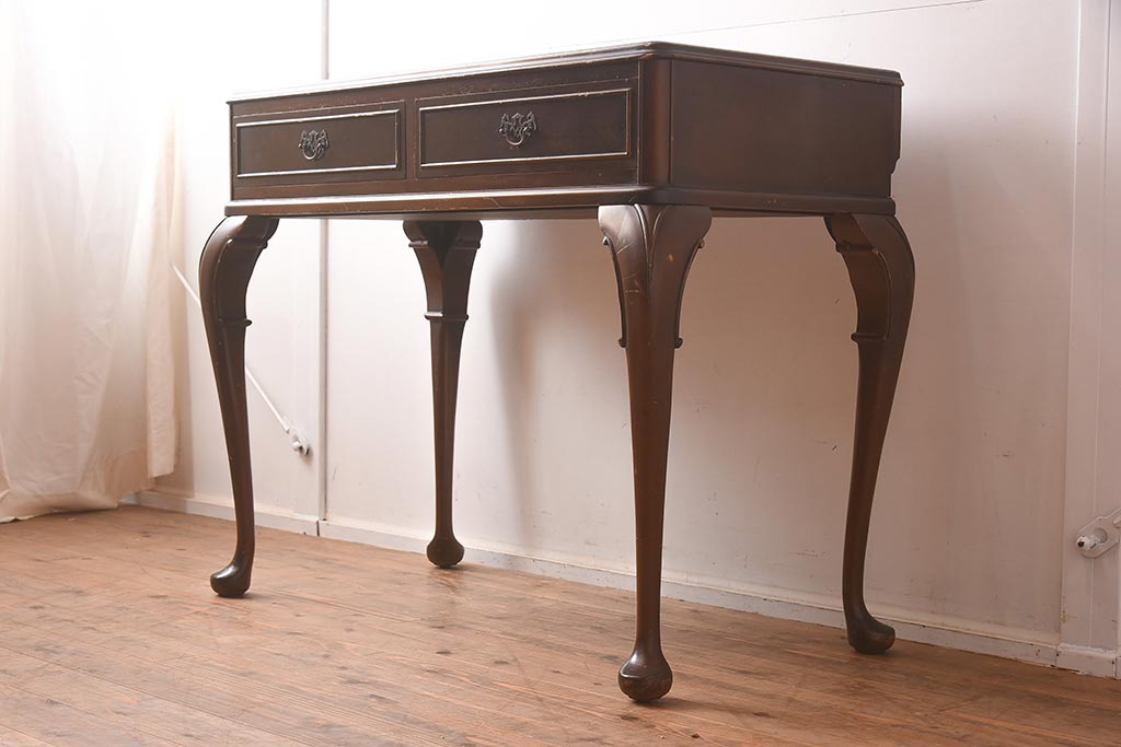 テーブル> コンソールテーブル > アンティーク家具 イギリスアンティーク レザートップ 猫脚のコンソールデスク(机、在宅ワーク、在宅用コンソールテーブル)(R-042234)