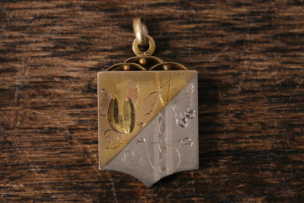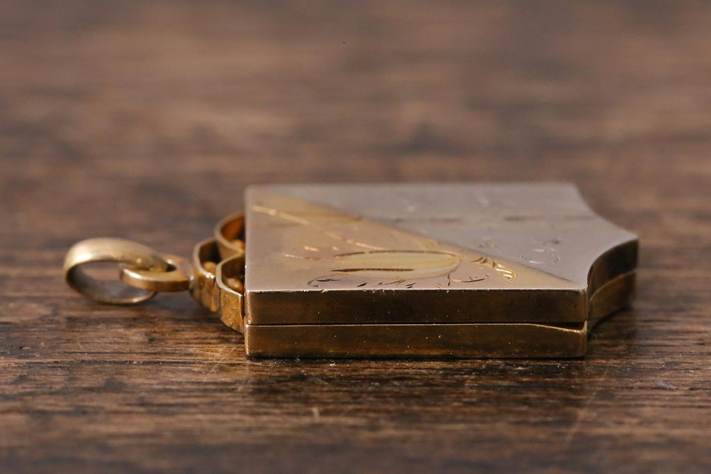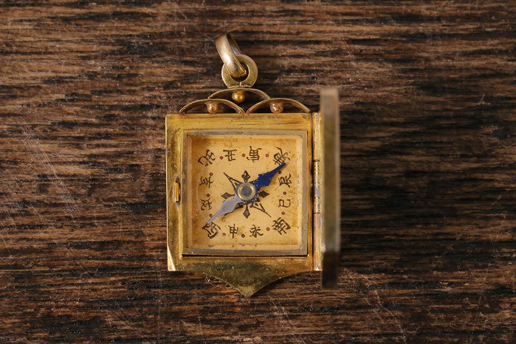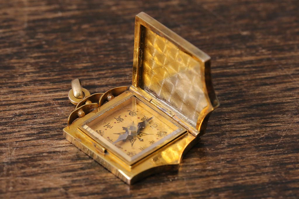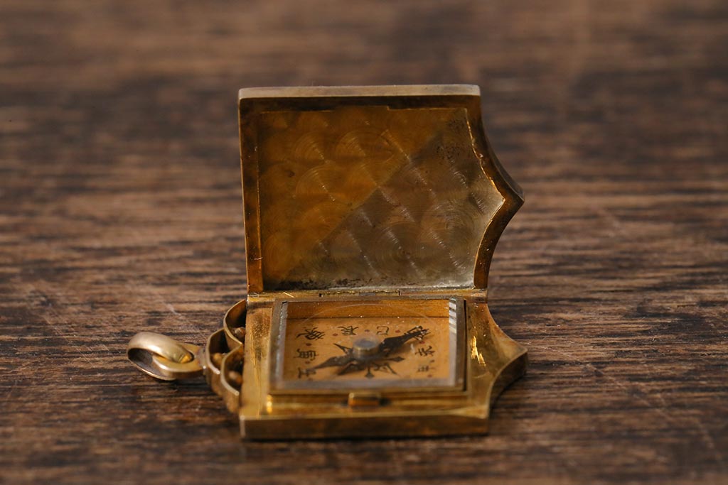 アンティークアクセサリー 大正昭和初期 K18彫金方位磁石(コンパス、ペンダントトップ)(R-042135)