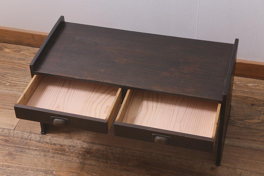 アンティーク家具 和製アンティーク 大正昭和初期 古民家スタイルにおすすめな文机(座机、ローテーブル、引き出し、センターテーブル)(R-042300)