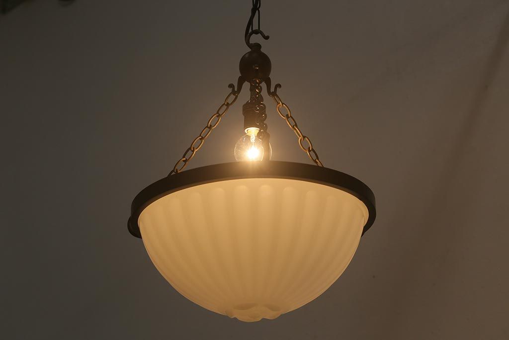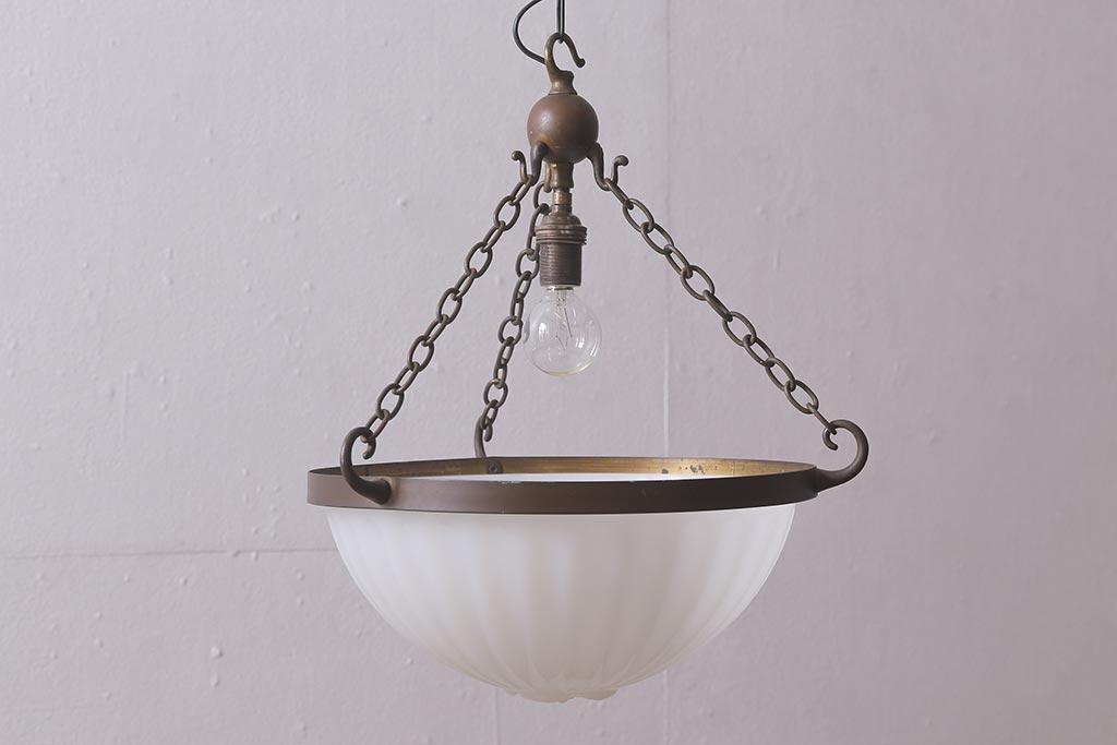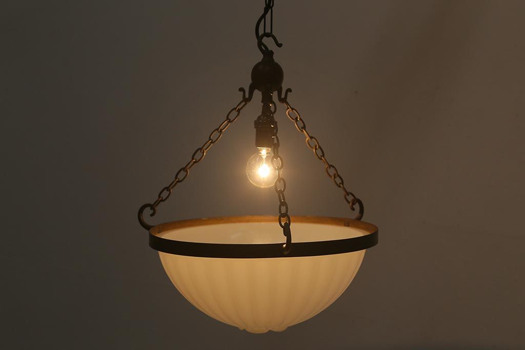 ヴィンテージ照明 イギリスビンテージ 真鍮製のおしゃれなハンギングボウル(天井照明、吊り下げ照明)(R-042259)