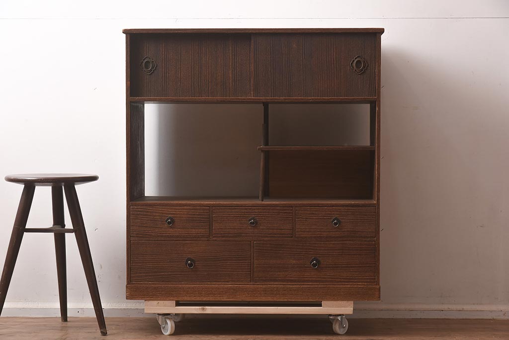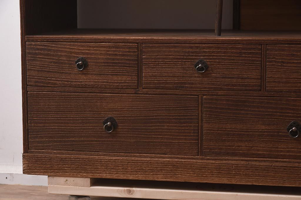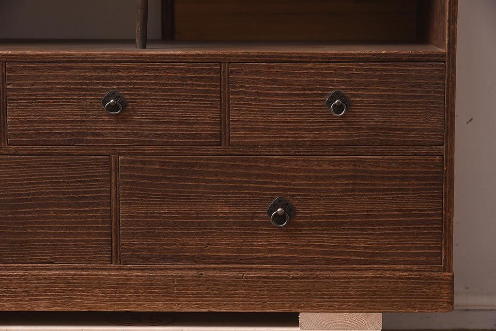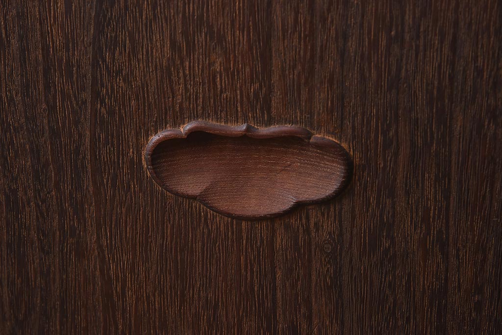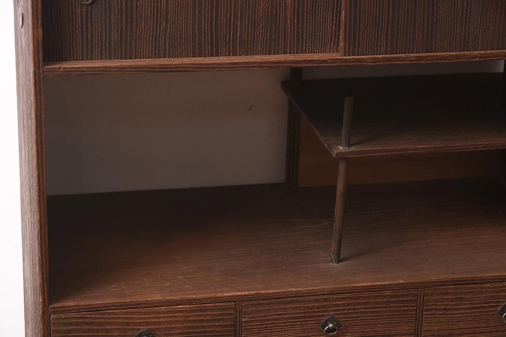 和箪笥> 茶箪笥・茶棚 > 【簡易リペア限定品】アンティーク建具 指物家具 工芸家具 総桐材 桑材の取っ手が施された上手物の茶棚(戸棚)(R-042283)