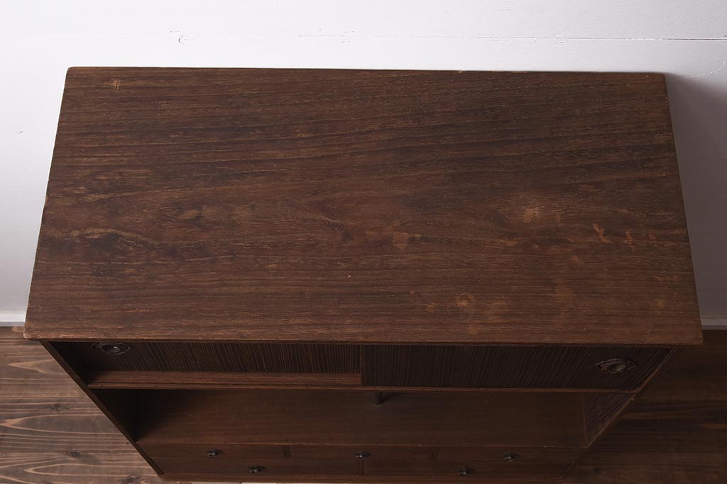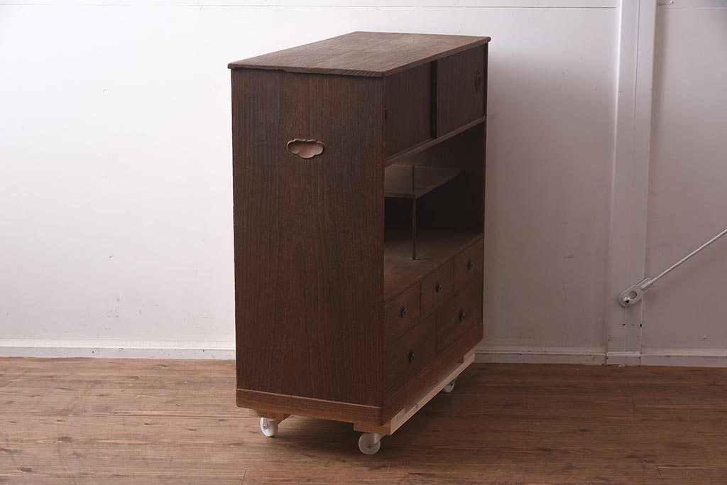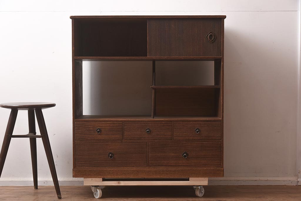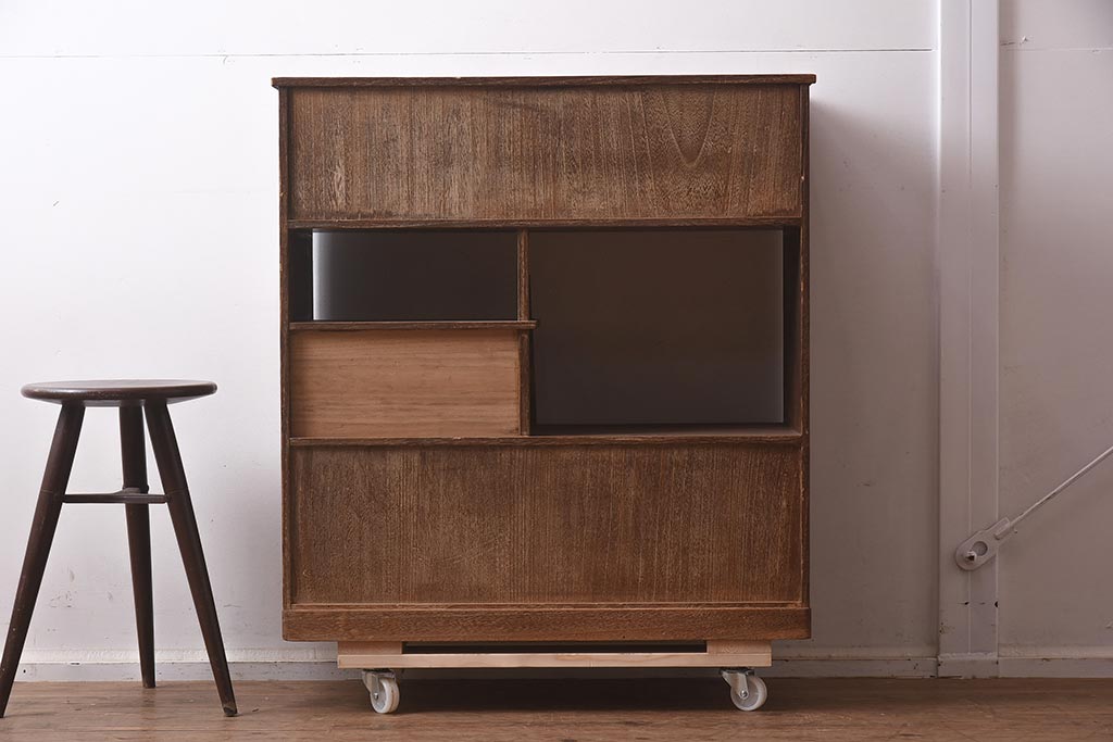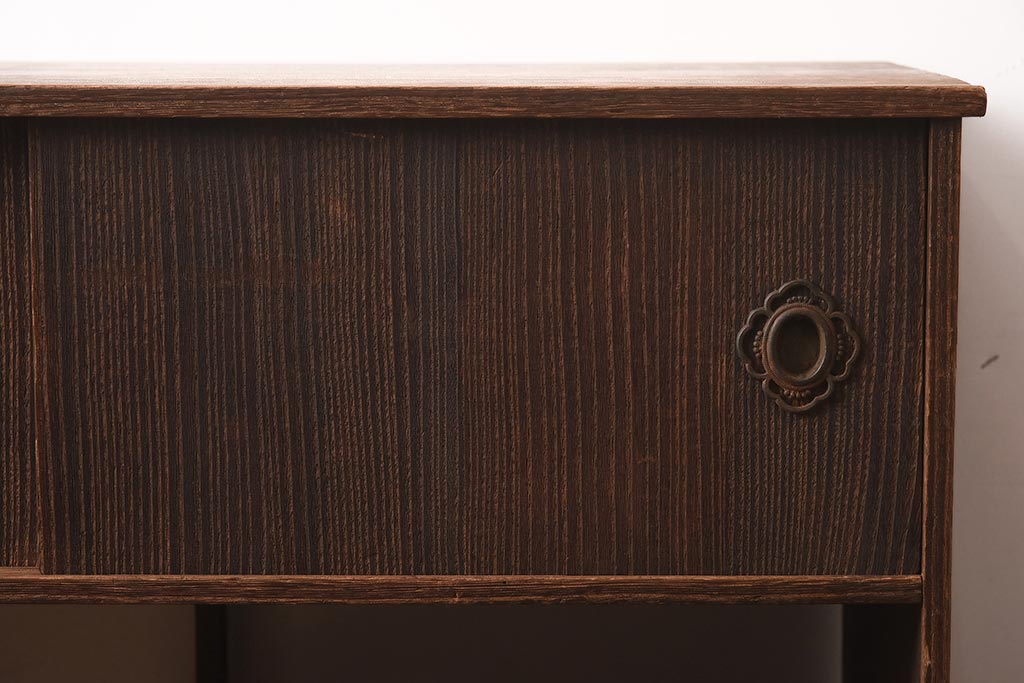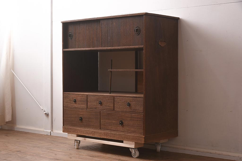 【簡易リペア限定品】アンティーク建具 指物家具 工芸家具 総桐材 桑材の取っ手が施された上手物の茶棚(戸棚)(R-042283)