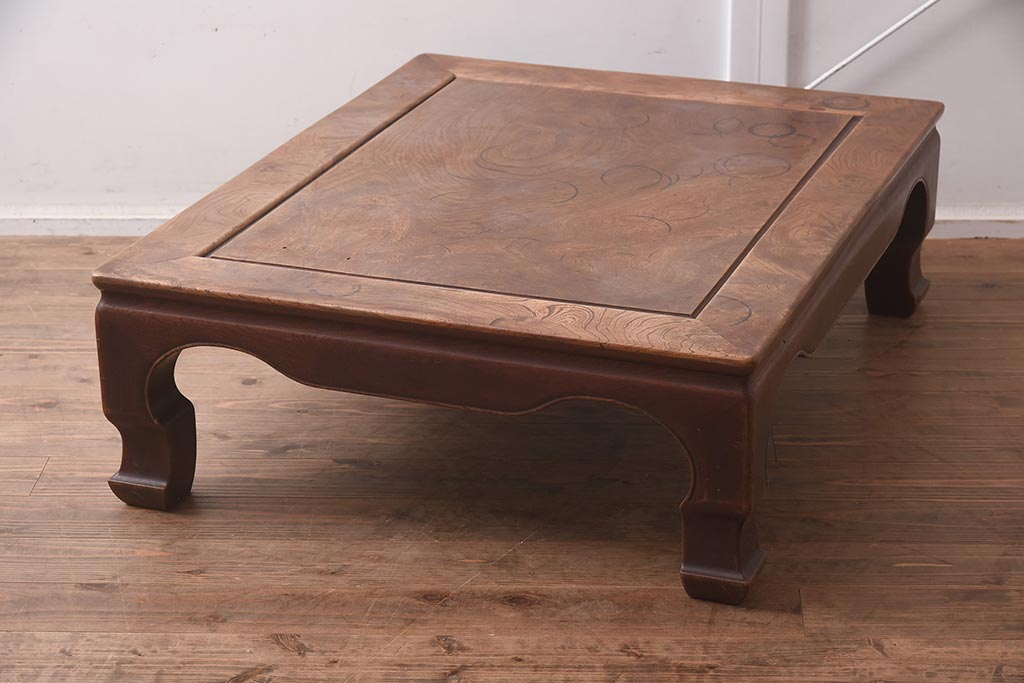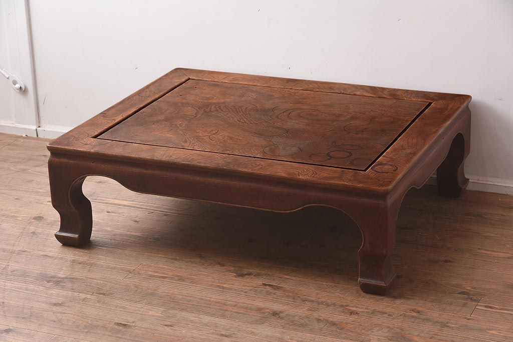テーブル> 座卓 > アンティーク家具 総ケヤキ材 天板一枚板 贅沢なつくりの座卓(ローテーブル)(R-042286)